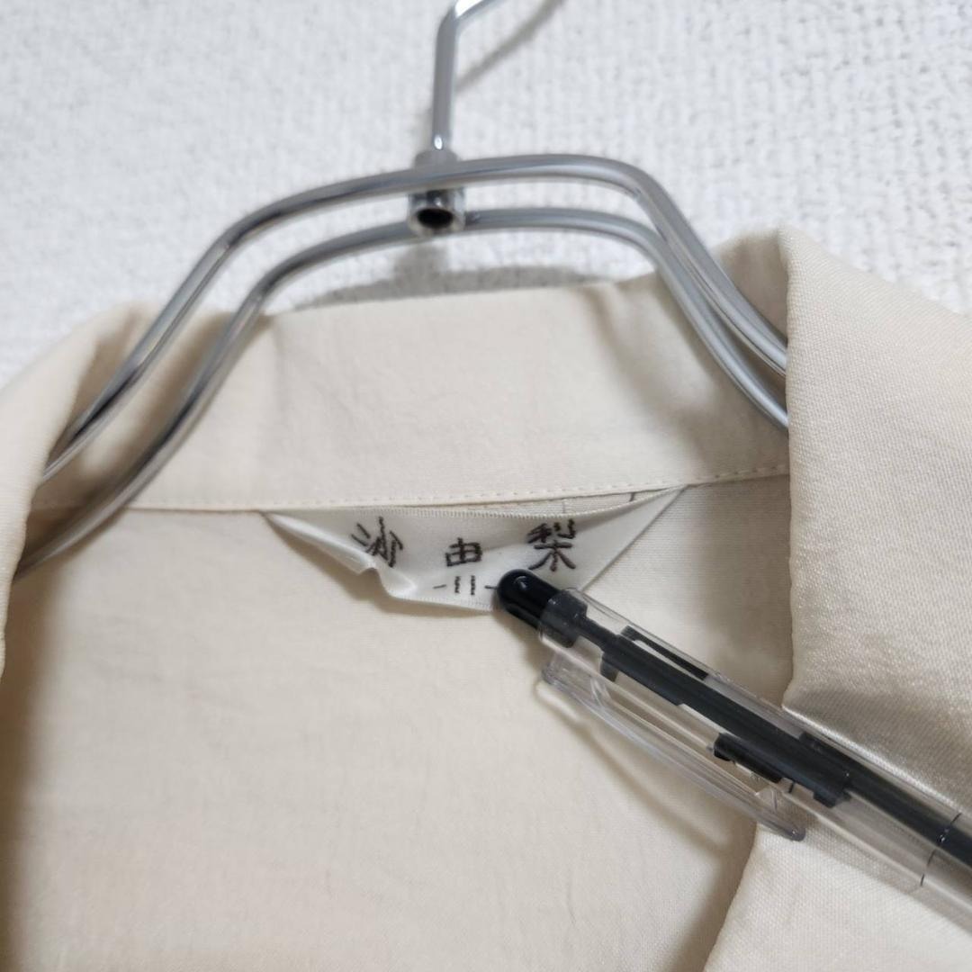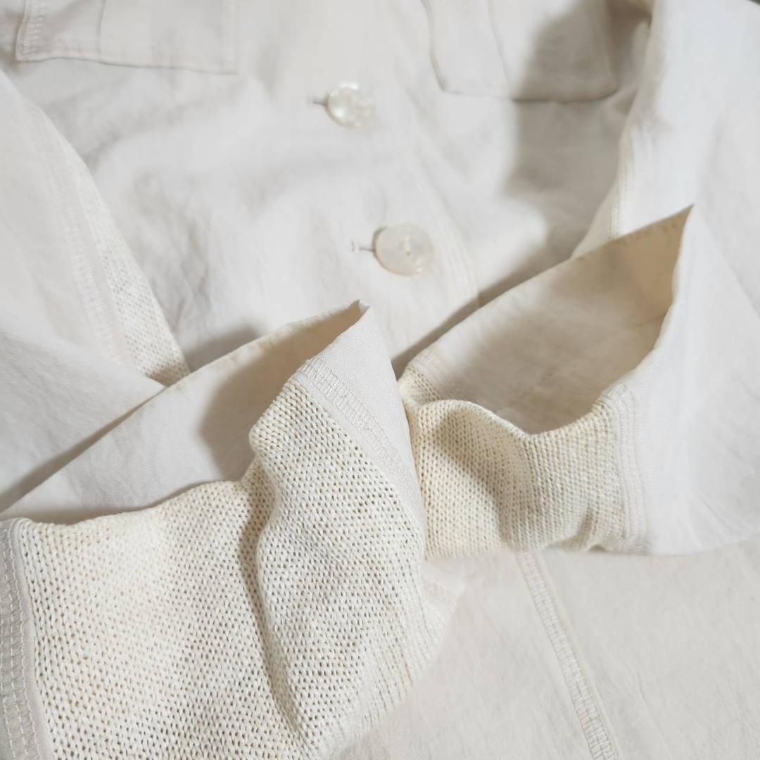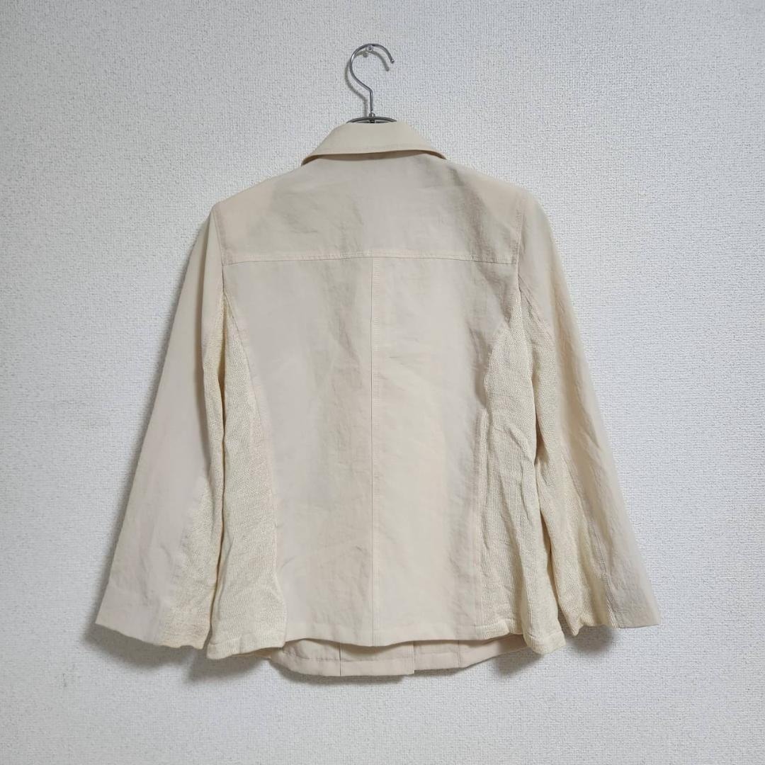 沙由梨のジャケットです。アイボリーカラーで柔らかな雰囲気を持ちながら、フロントポケットやDリングのアクセントがあり、きれいめにもカジュアルにも合わせやすい一着です。