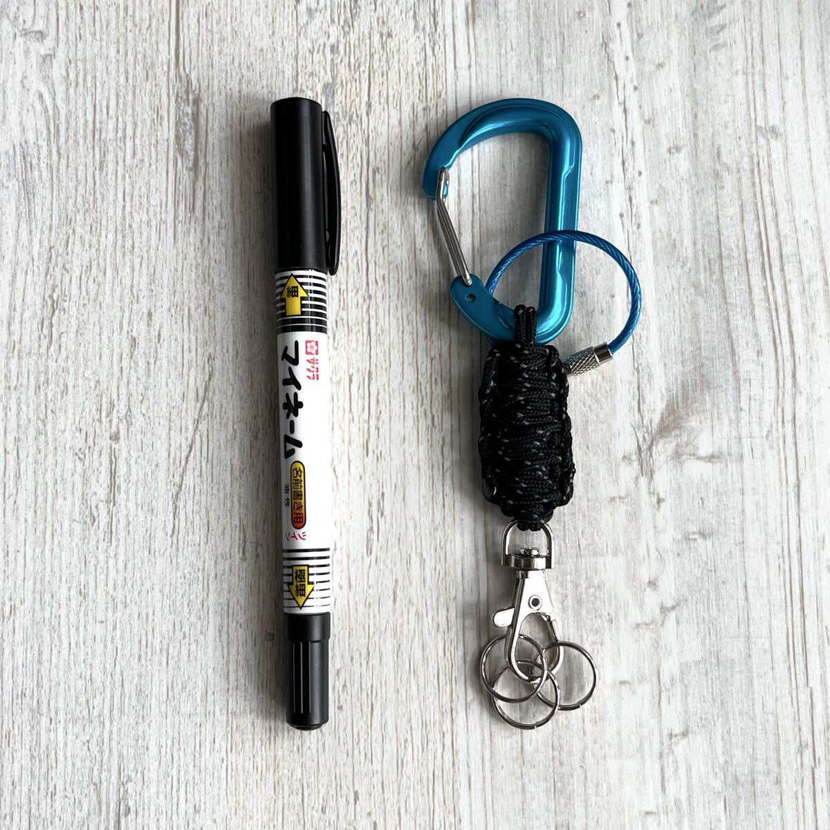 ワイヤーリングが付属された、カラビナキーホルダーです。