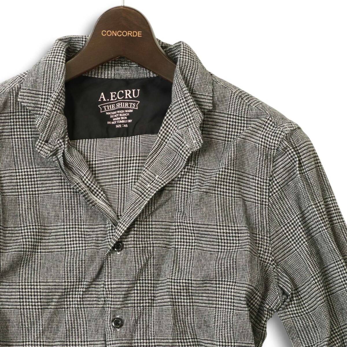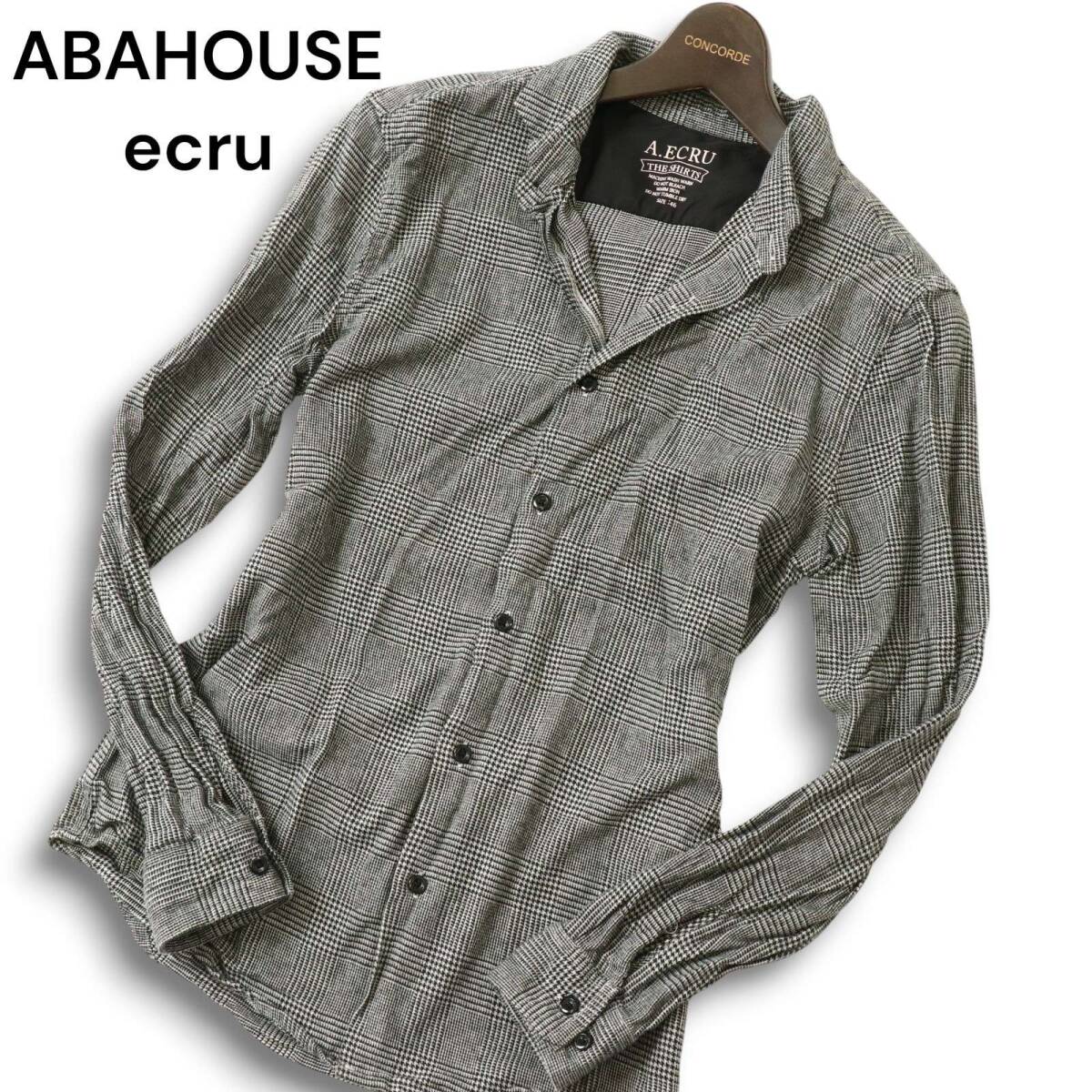 ABAHOUSE ecru アバハウス エクリュ 秋冬 グレンチェック★ 長袖 ボタンダウン ネル シャツ Sz.46 メンズ