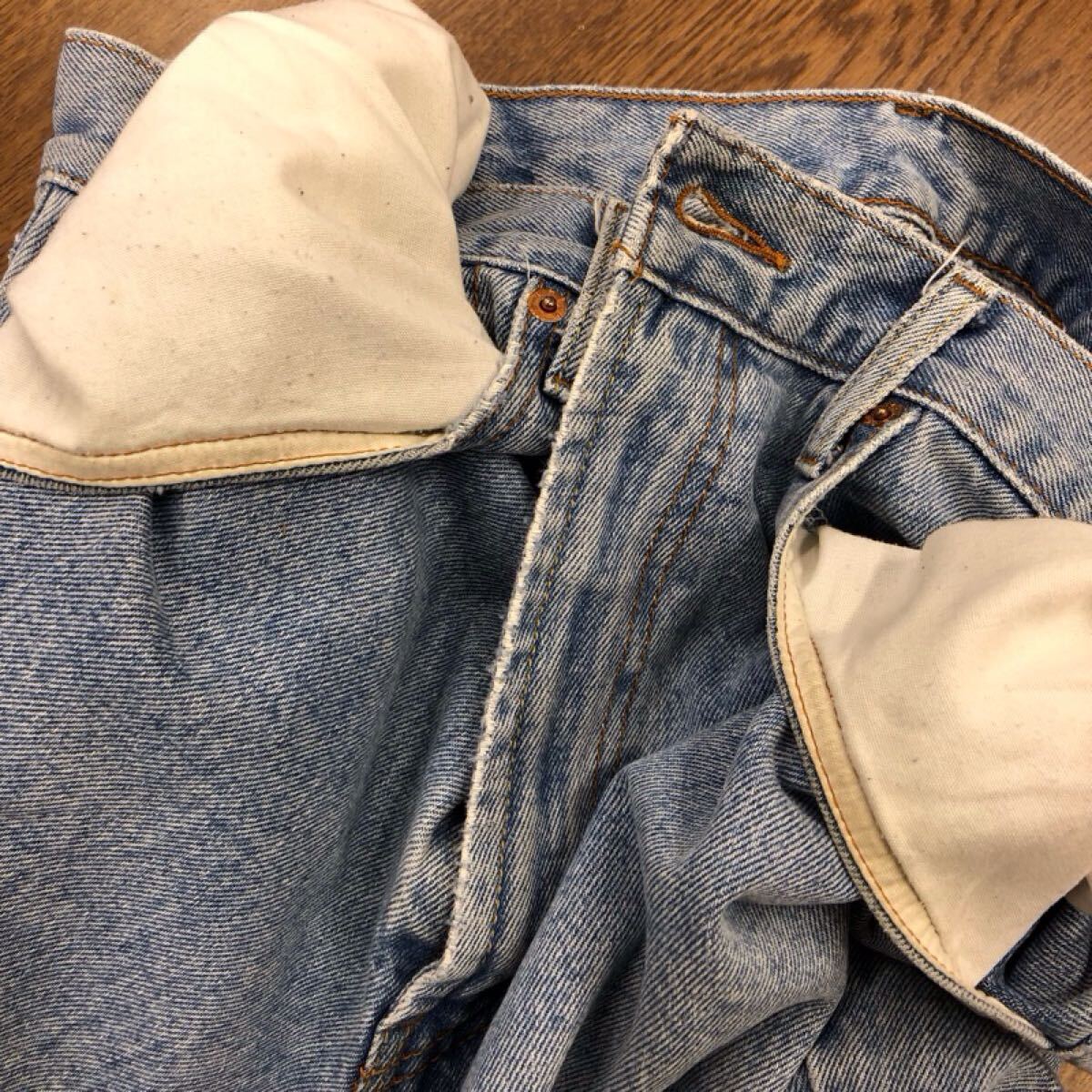 ●ウエスト→フロントボタンやジップは閉じ、ウエストの表中心と後ろ中心を合わせて机や床など平面な場所に置き、フラットに測れるよう生地を軽く手で押さえ、平置きしたパンツの左右端の最上部を計測、実寸した数値×2の表記をしてます。