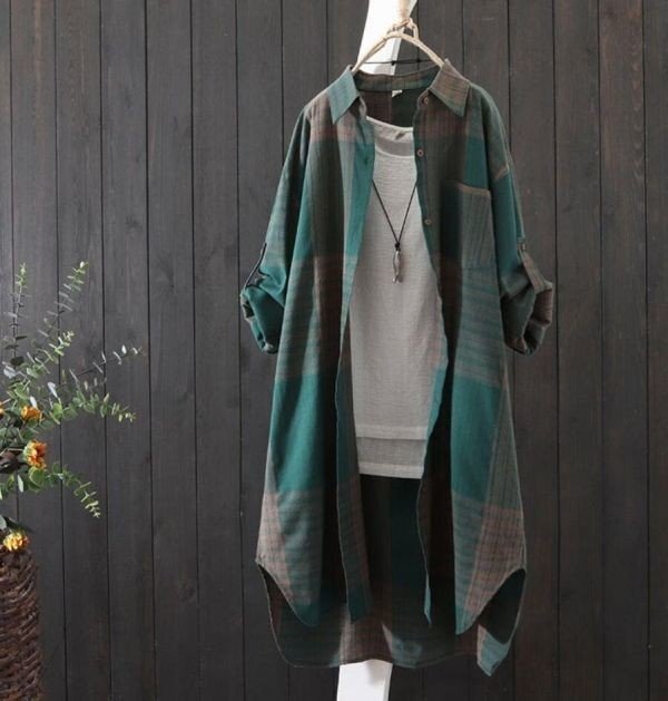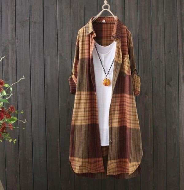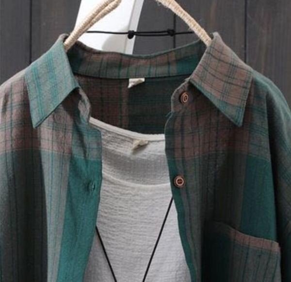 秋新品 カジュアル 素敵な チェック柄 お洒落 シック 大きいサイズ 長袖 シャツカーディガン ★ コーヒー/Mサイズ