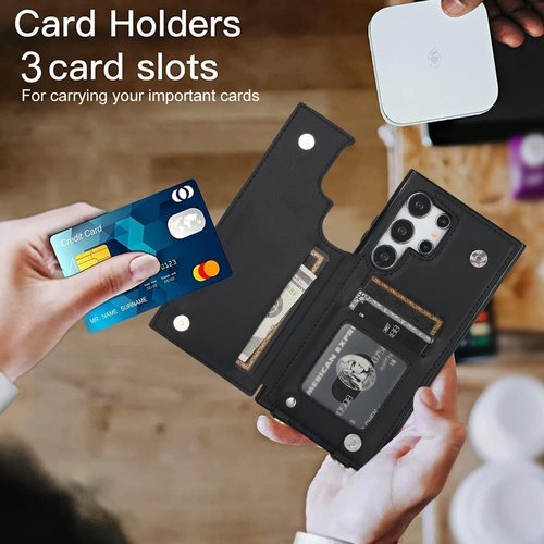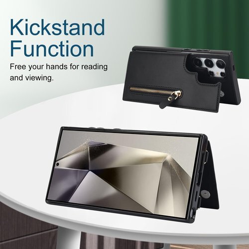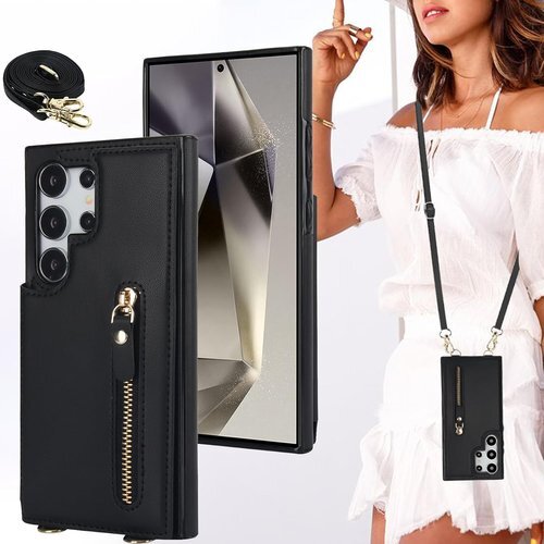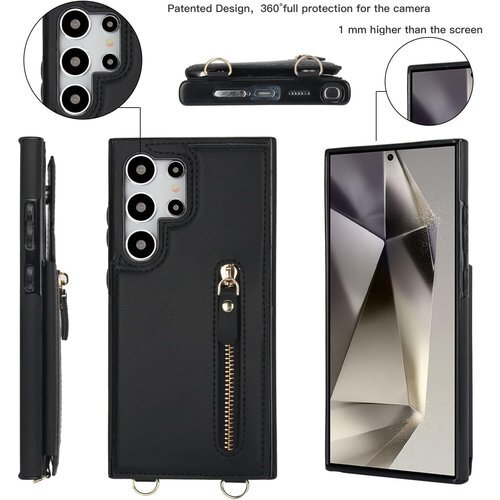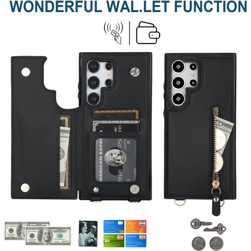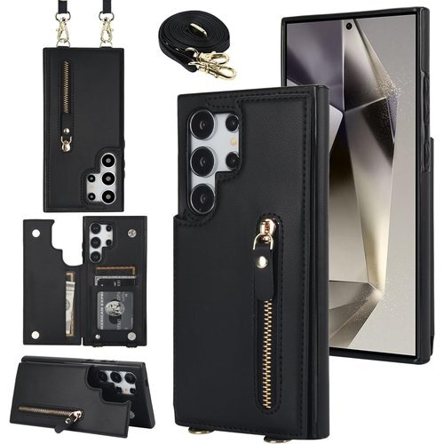 ぎゃらくしー S24 ウルトラ ケース 手帳型 ショルダー ストラップ 背面 フリップ 紐付き カード クロスボディ Galaxy S24 Ultra スマホケース SCG26 SC-52E 手帳ケース ギャラクシー エス24 ウルトラ 適用 BonwFzin RFID防止 肩がけ 首掛け 斜め掛け 小銭入れ ファスナー型 ストラップ付き カードケース スタンド カード入れ ブラック 1212