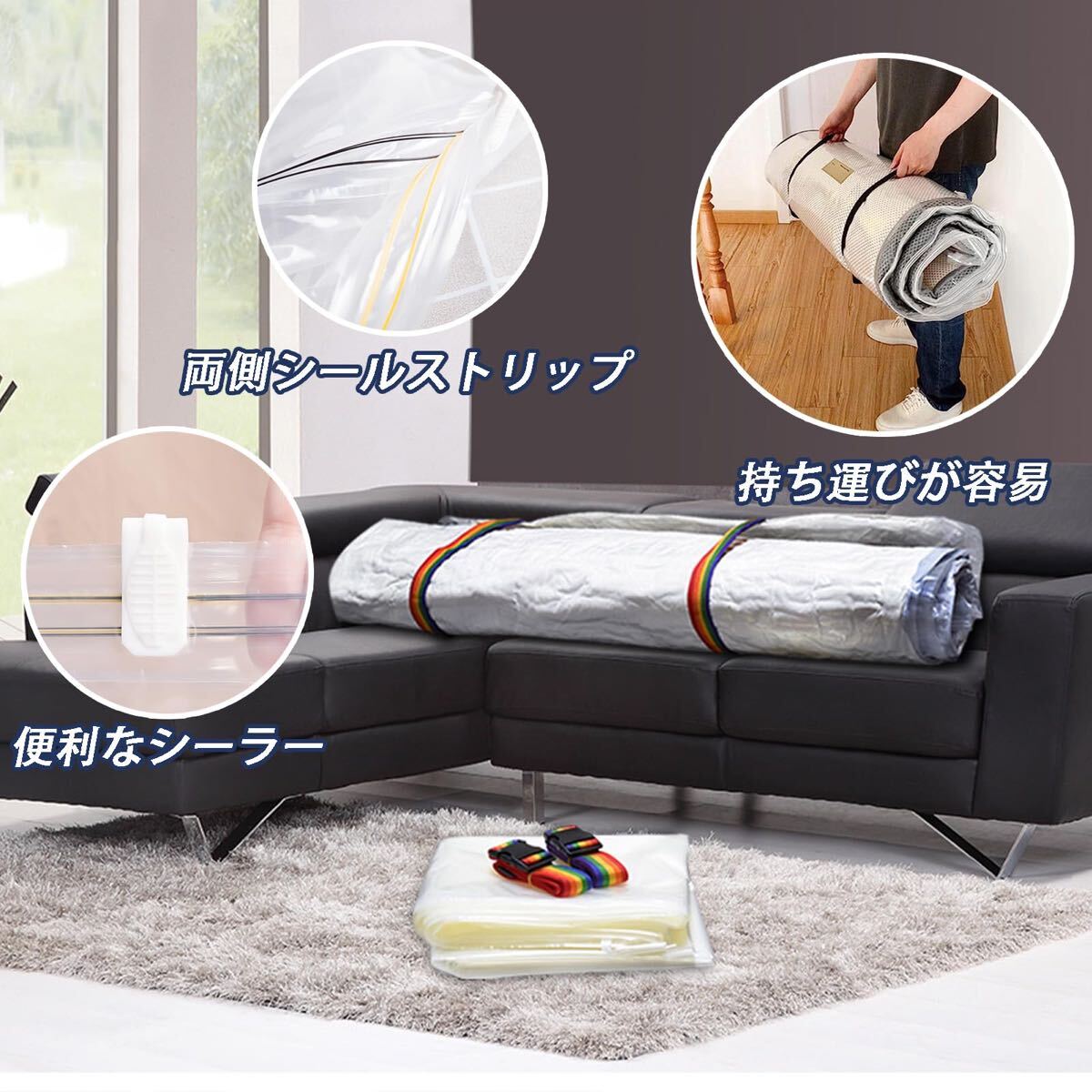 【省スペース収納バッグ】掛け布団や毛布、枕、セーター、季節の衣類、その他のかさばるアイテムすべてに最適です。1枚の圧縮袋=4枚の普通圧縮袋 より大きいサイズの布団圧縮袋なので、冬用の敷布団も収納できて、小さい圧縮袋ごとの時間が省けます。