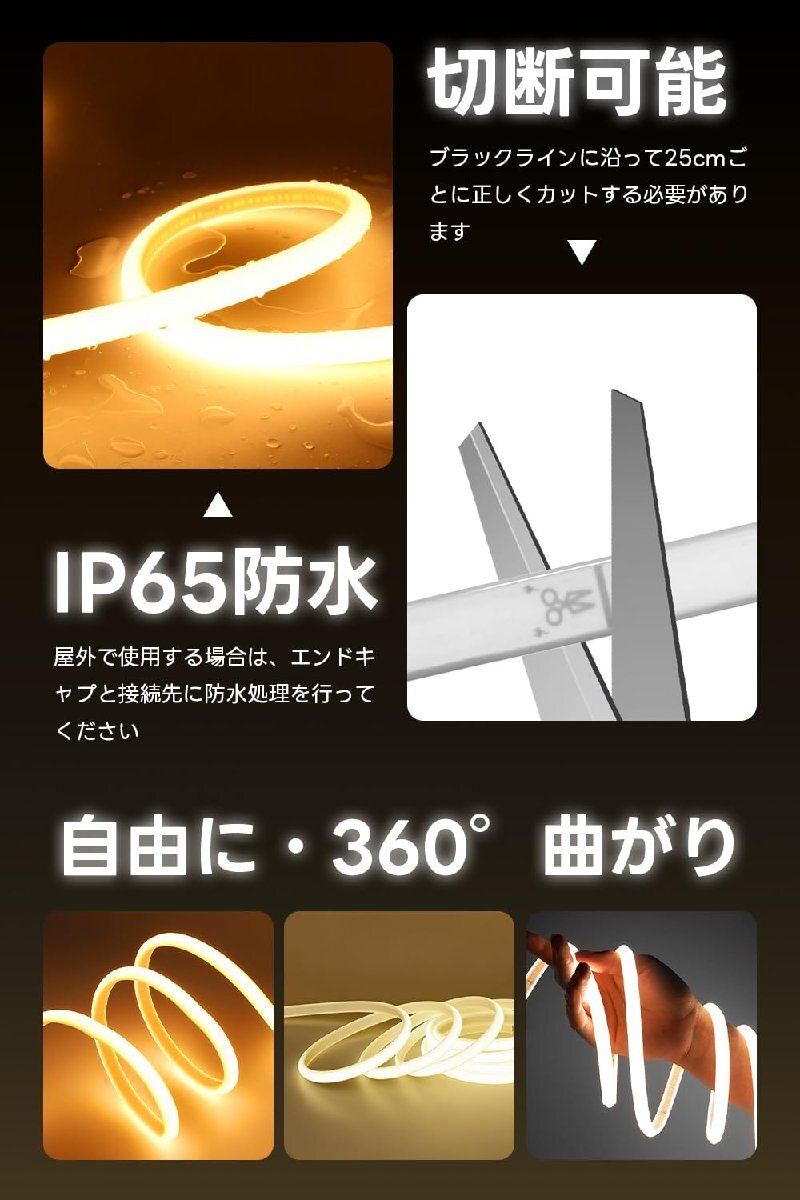 【曲がりやすい&IP67防水】LEDネオンライトは高品質素材を厳選して、耐久性と柔らかさがありますので、360°曲がりが可能です。ネオンライト外部はチューブが付きで、IP65防水可能、屋外でも安心してお使いいただけます。(屋外で使用する場合は、必ずプラグ、とエンドキャプに防水処理を行ってください。)