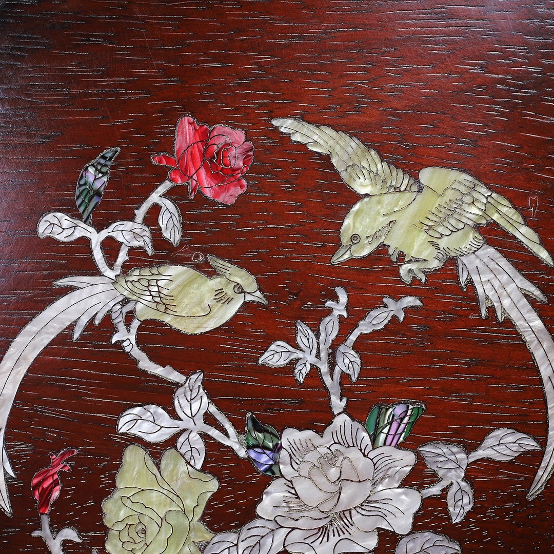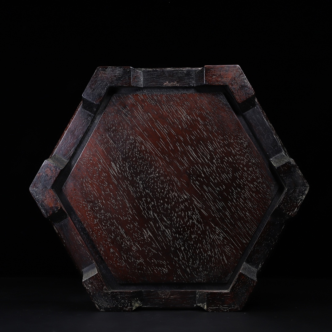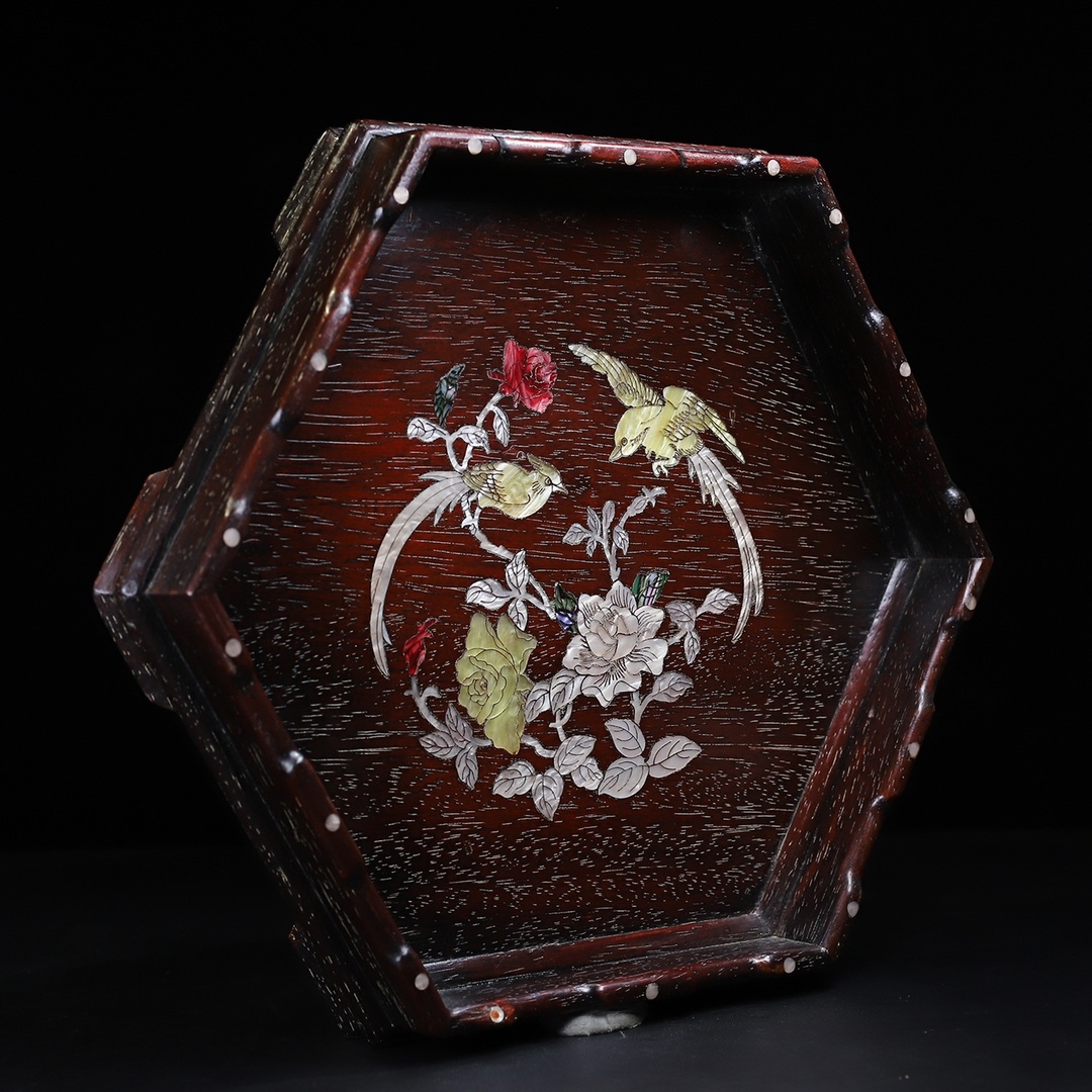 *珍品旧蔵* 清 紫檀木 はめ込む貝殼 六角曲線邊 茶盤 託盤 收納盤 木製 極細工 中国古玩 骨董品 古美味 H49