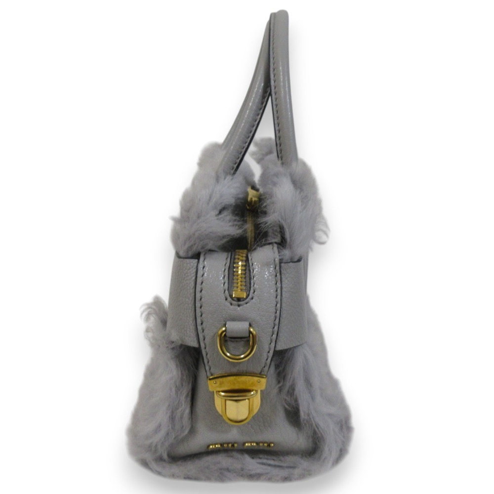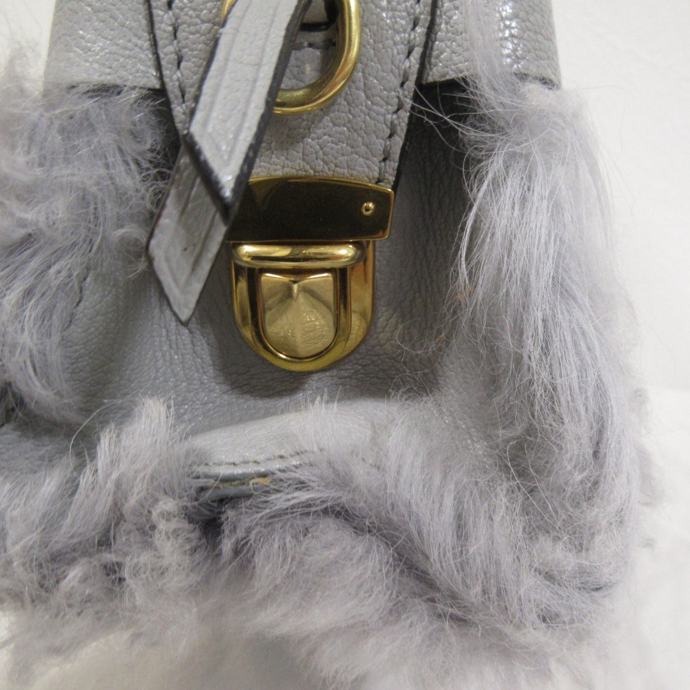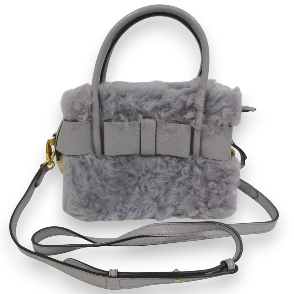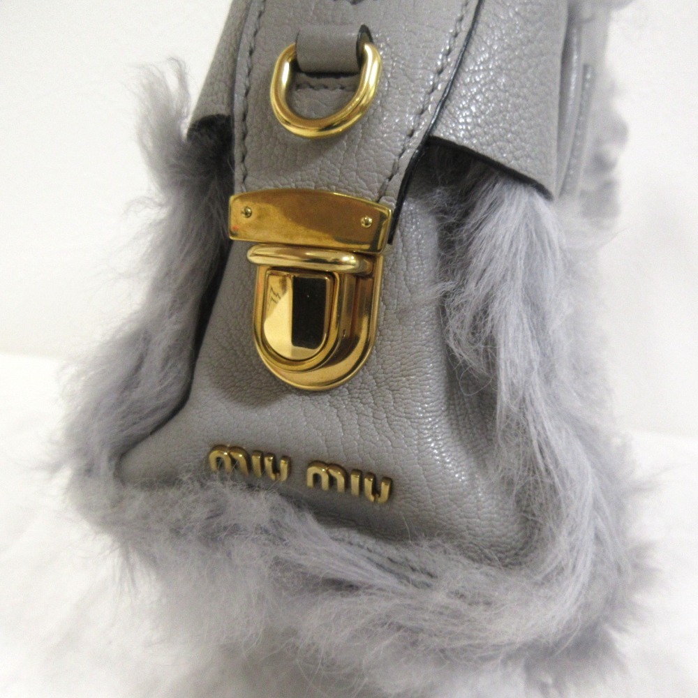 美品 miu miu ミュウミュウ リボン ムートンコンビ 2Way ハンドバッグ ショルダーバッグ 5BH082 グレー