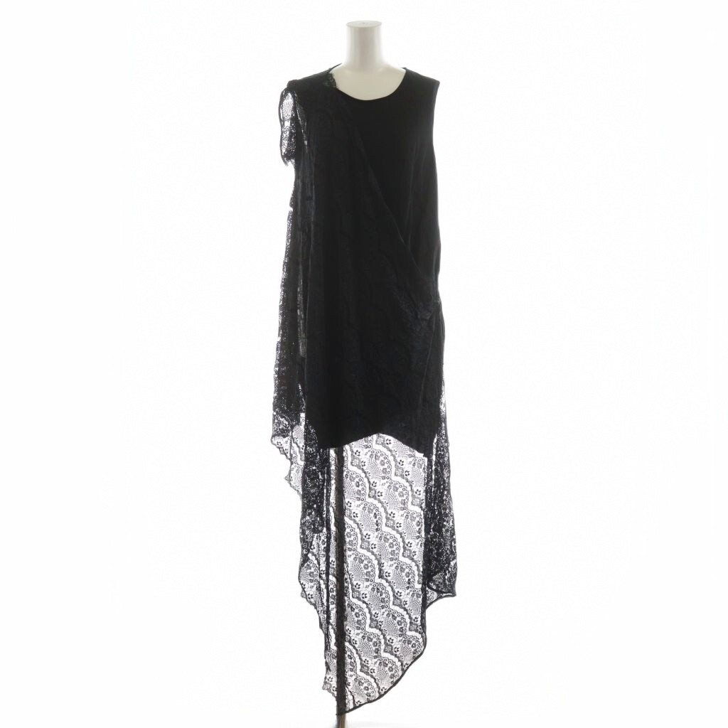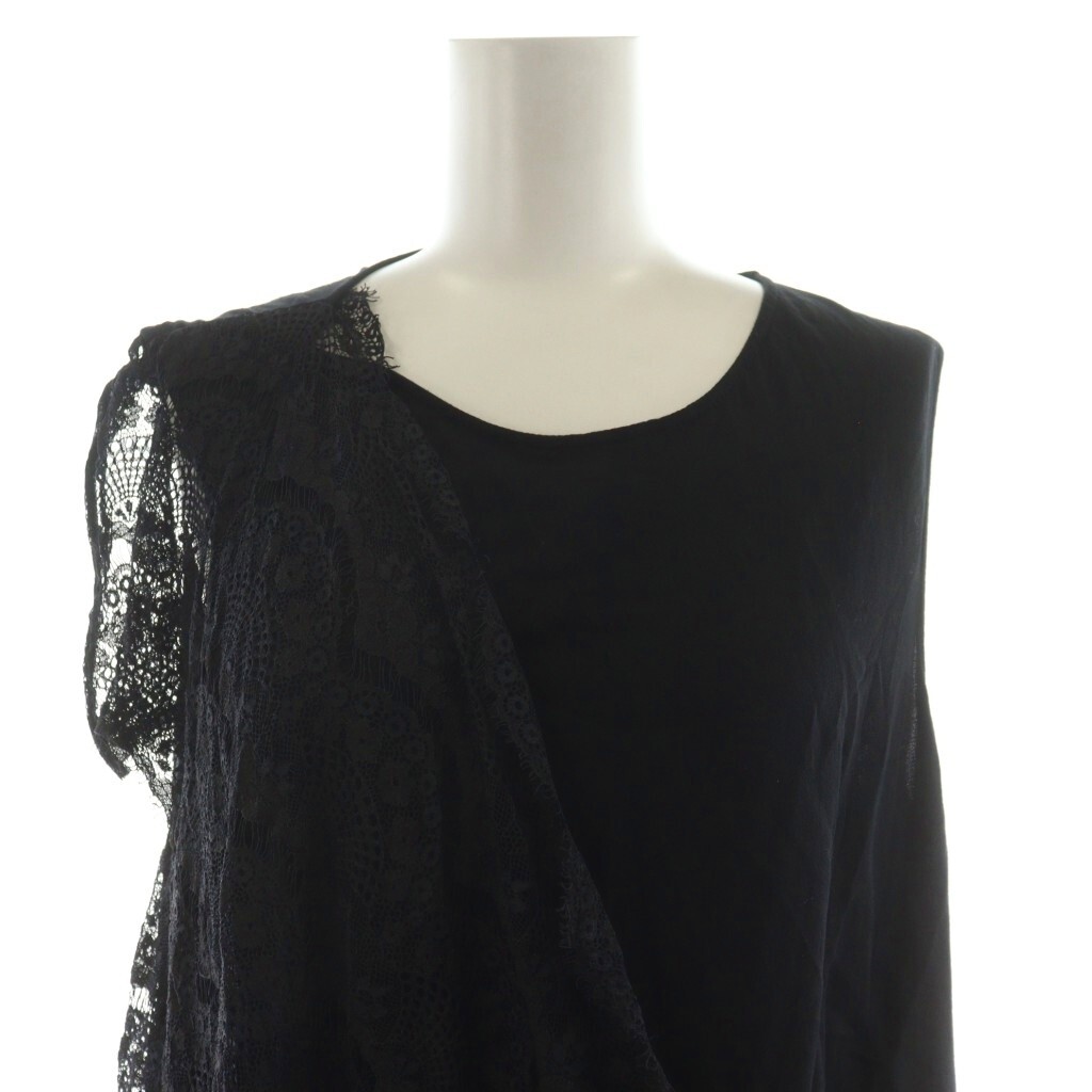 リミフゥ LIMI feu LAWN + SATIN DOUBLE FRONT BLOUSE ワンピース ひざ丈 ノースリーブ 切替 レース 2 黒 ブラック LS-B16-803