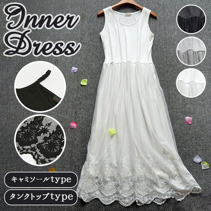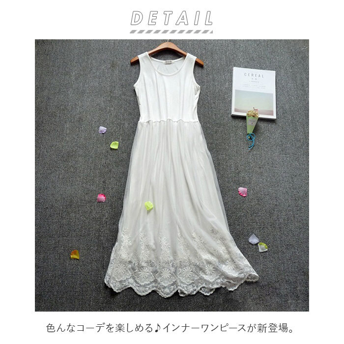商品説明 | ・・色んなコーデを楽しめる♪インナーワンピースが新登場。 ・上身頃部分はサラッと軽い生地感。伸縮性もあり、着心地抜群!(※薄手で透け感があるので、お手持ちのインナーと合わせることをおすすめします。) ・チュール素材を重ねたスカートは、フラワーモチーフの刺繍デザイン入れてフェミニンな印象に♪ ・タンクトップタイプとキャミソールタイプの2タイプ。 ・キャミソールタイプは、ストラップの長さ調節が可能。(※カラーによりストラップの留め具素材が異なります。) ・インナーとしてもワンピースとしても使えるアイテム! ・シンプルなワンピースの下にこっそり忍ばせて、レイヤードコーデ♪ ・薄手のトップスを合わせれば、主役のワンピースに。カーディガンなどを羽織ってもOK。 ・ニットなどボリュームのあるトップスと組み合わせて、スカートのように着てもキュート。 ・どんなコーデにも合わせやすい、スタンダードカラーをラインナップ。 |