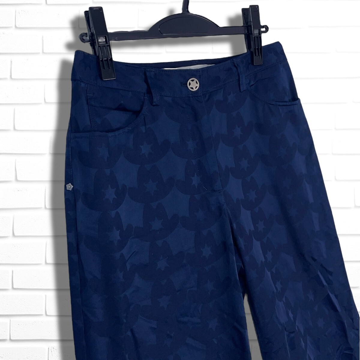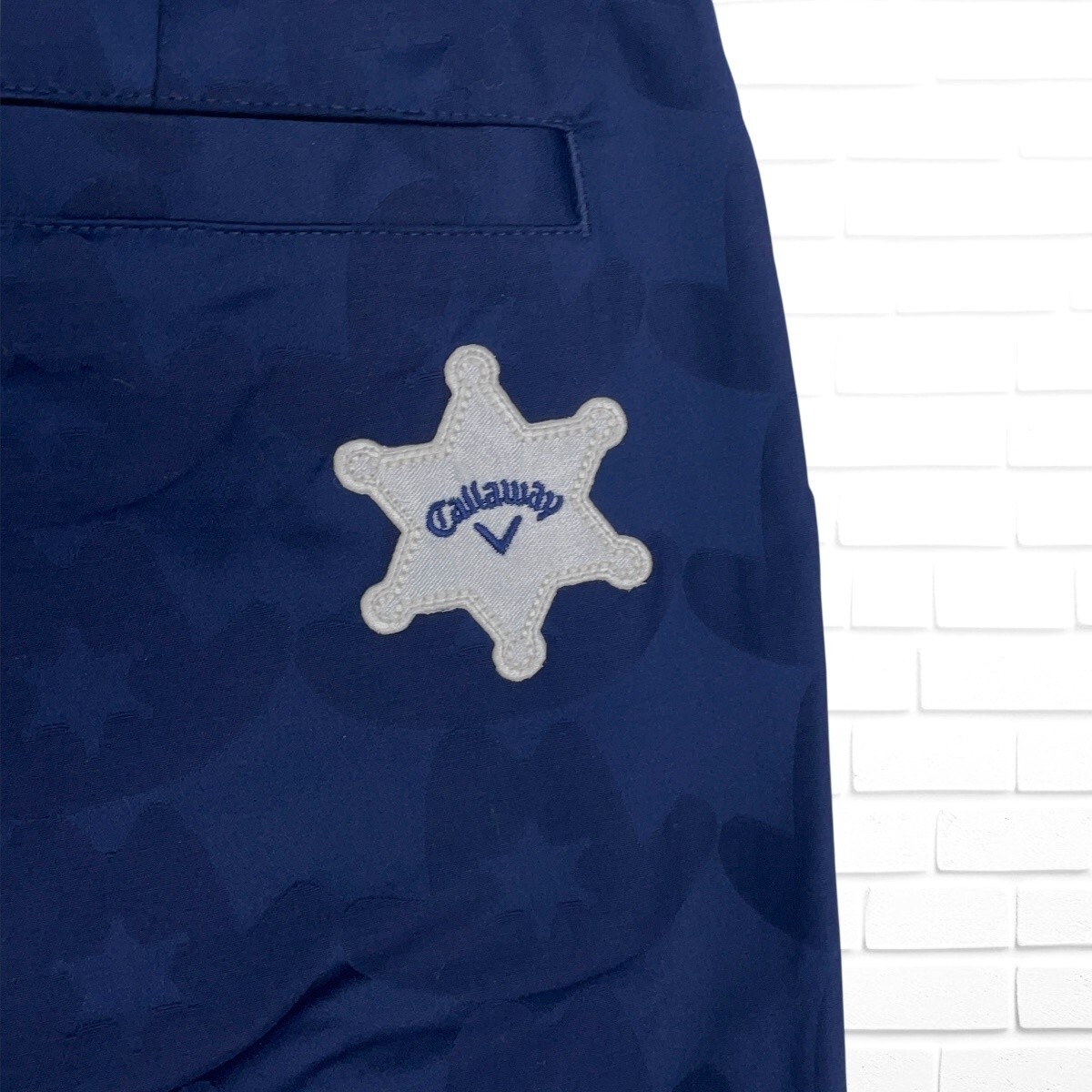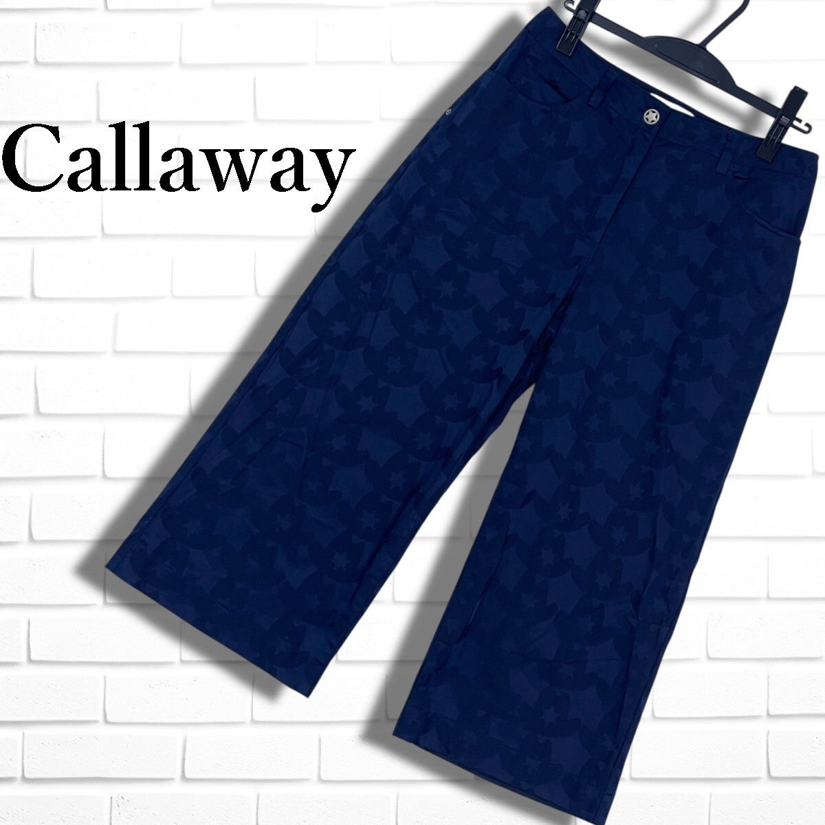 ◆良品◆ Callaway キャロウェイ ゴルフ ウェア ストレッチ ロゴ ワッペン 総柄 クロップド パンツ 紺 ネイビー レディース L 6025H◎