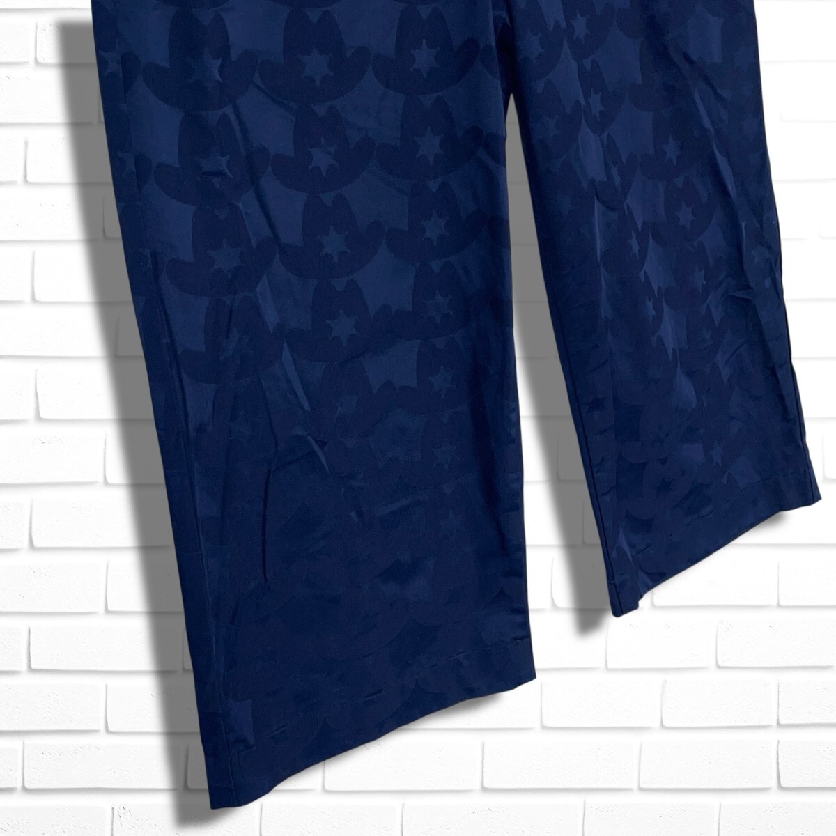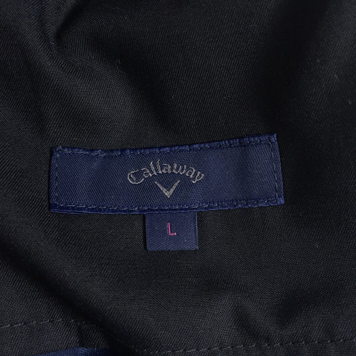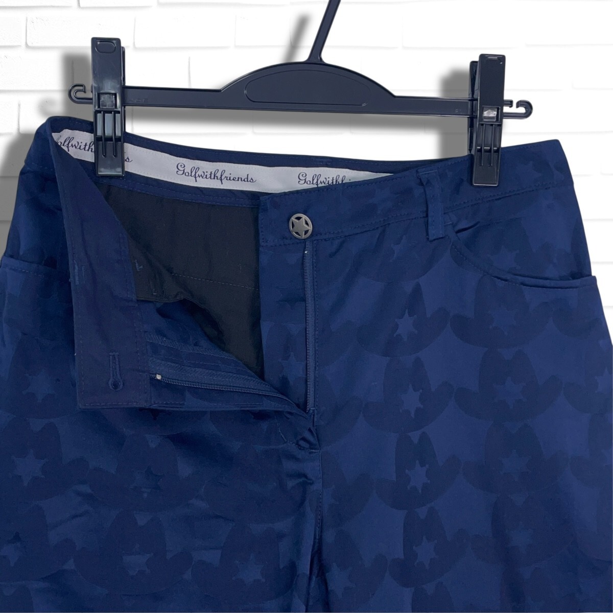 ◆良品◆ Callaway キャロウェイ ゴルフ ウェア ストレッチ ロゴ ワッペン 総柄 クロップド パンツ 紺 ネイビー レディース L 6025H◎