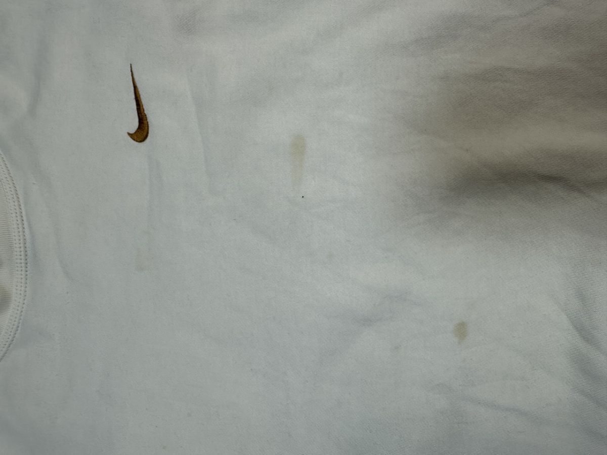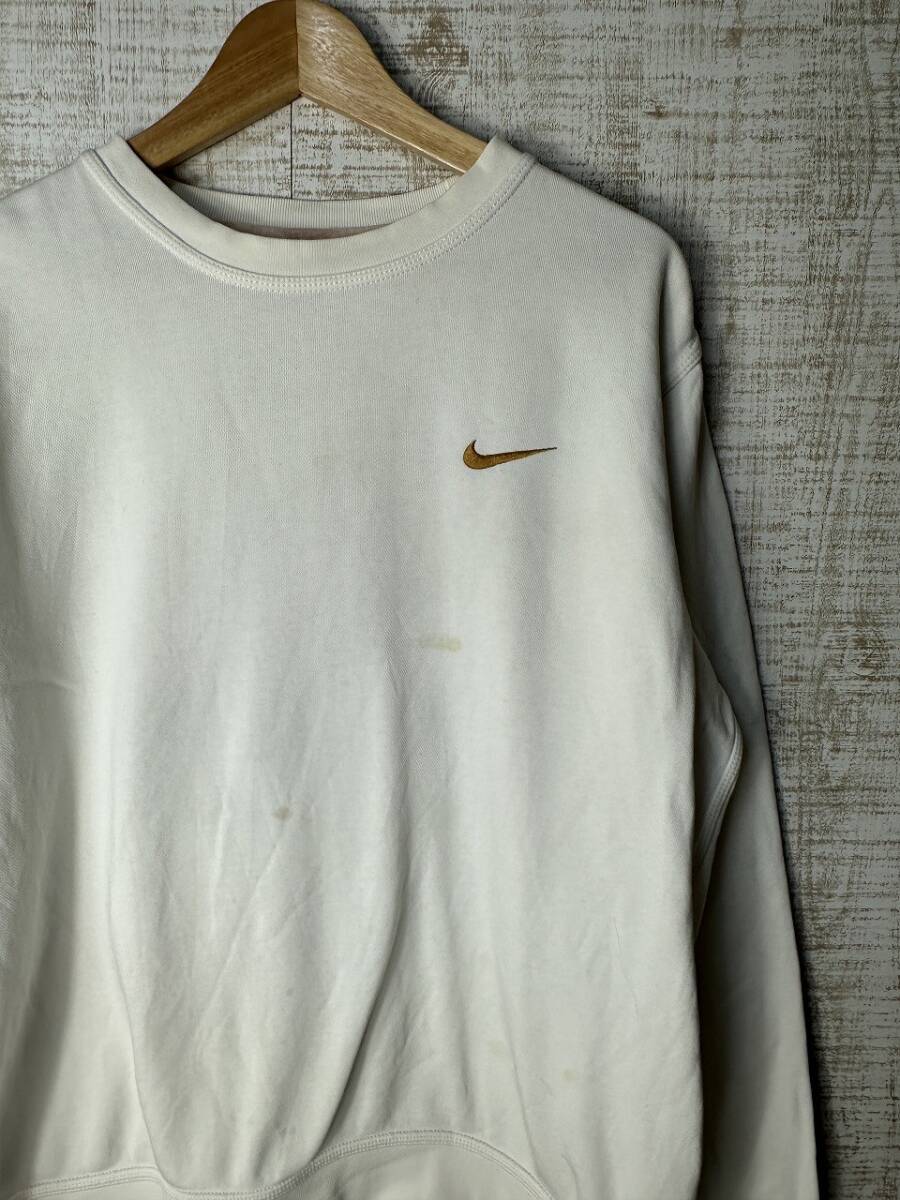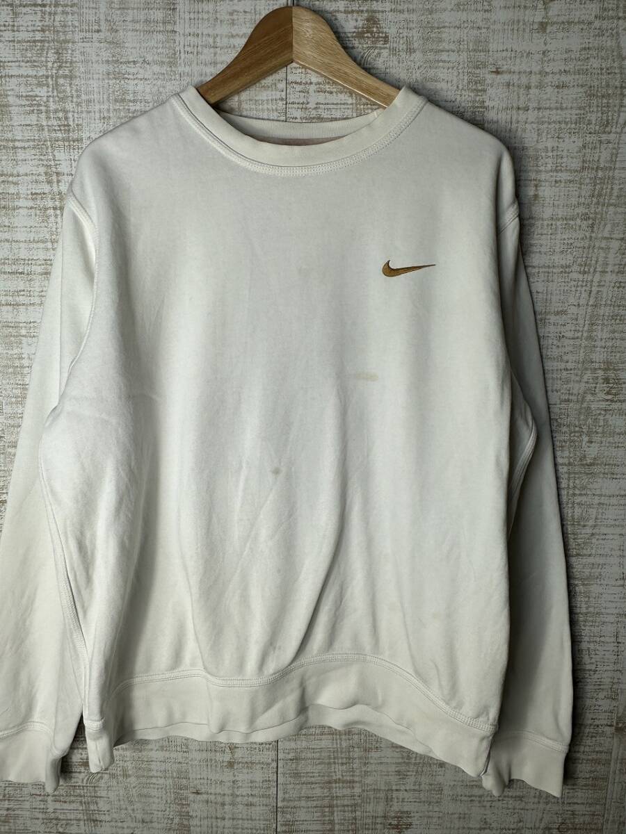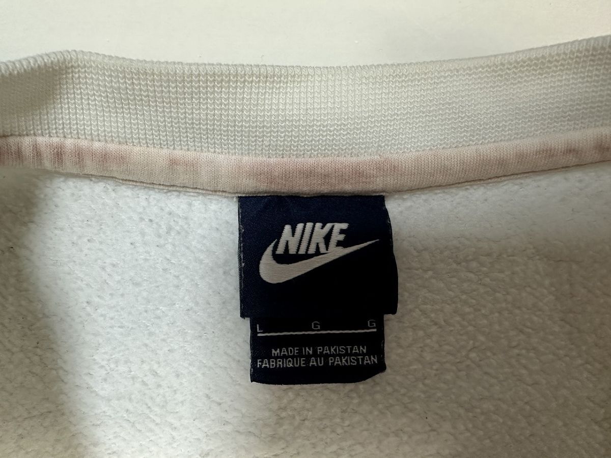●US USED 訳アリ US古着 NIKE ナイキ スウェット ロゴ刺繍 裏起毛 白ホワイト【L】コットンポリ