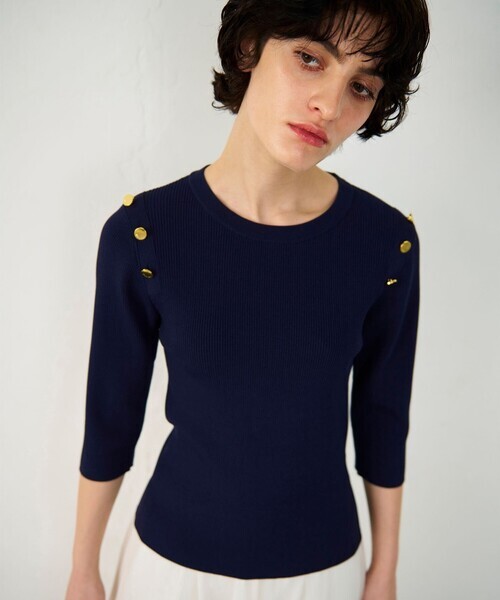 参考商品名:メタル釦リブニットトップ