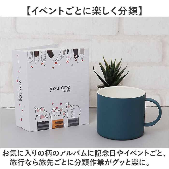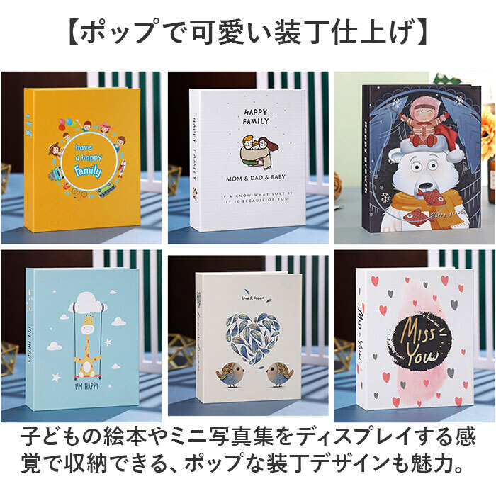 商品説明 | ・・【思い出のフォトをひとまとめ!】 ・ポップで可愛らしいブックに、L版写真がたっぷり収納できる「大容量フォトアルバム」が新登場。 ・【気軽に手に取れるブックサイズ】 ・ご家族の笑顔のフォトを小説のように気軽に手に取って眺められるブックサイズにギュッと凝縮。 ・【コンパクトなのにたっぷり100枚】 ・縦向きにしたL版サイズの写真を、1ページに1枚ずつ、合計100枚収納できる大容量タイプ。 ・【豊富なポケットでスッキリ整理】 ・ライフイベントのたびに増えていくたくさんの写真も、豊富なポケット数でスッキリ収納♪ ・【ポップで可愛い装丁仕上げ】 ・子どもの絵本やミニ写真集をディスプレイする感覚で収納できる、ポップな装丁デザインも魅力。 ・【イベントごとに楽しく分類】 ・お気に入りの柄のアルバムに記念日やイベントごと、旅行なら旅先ごとに分類作業がグッと楽に。 |