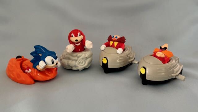 1994年頃 マクドナルドのハッピーセットのおまけです。 ソニック・ザ・ヘッジホッグ ナックルズ ドクター・エッグマン アメリカ版のイーヴォ・ロボトニック Dr.IVO ROBOTNIK(ドクター・エッグマン) 以上4個 ソニックとナックルズは未開封の物を出品いたします。 :::::::::::::::::::::::::::::::::: 古い物、ヴィンテージ品です。 長期保管していた物で新品ではありません。 キズ、擦れ、印刷の剥がれ、褪色、変色、汚れ、その他経年による劣化等ございます。 ご理解の上、ご検討よろしくお願いいたします。 | ||||||||