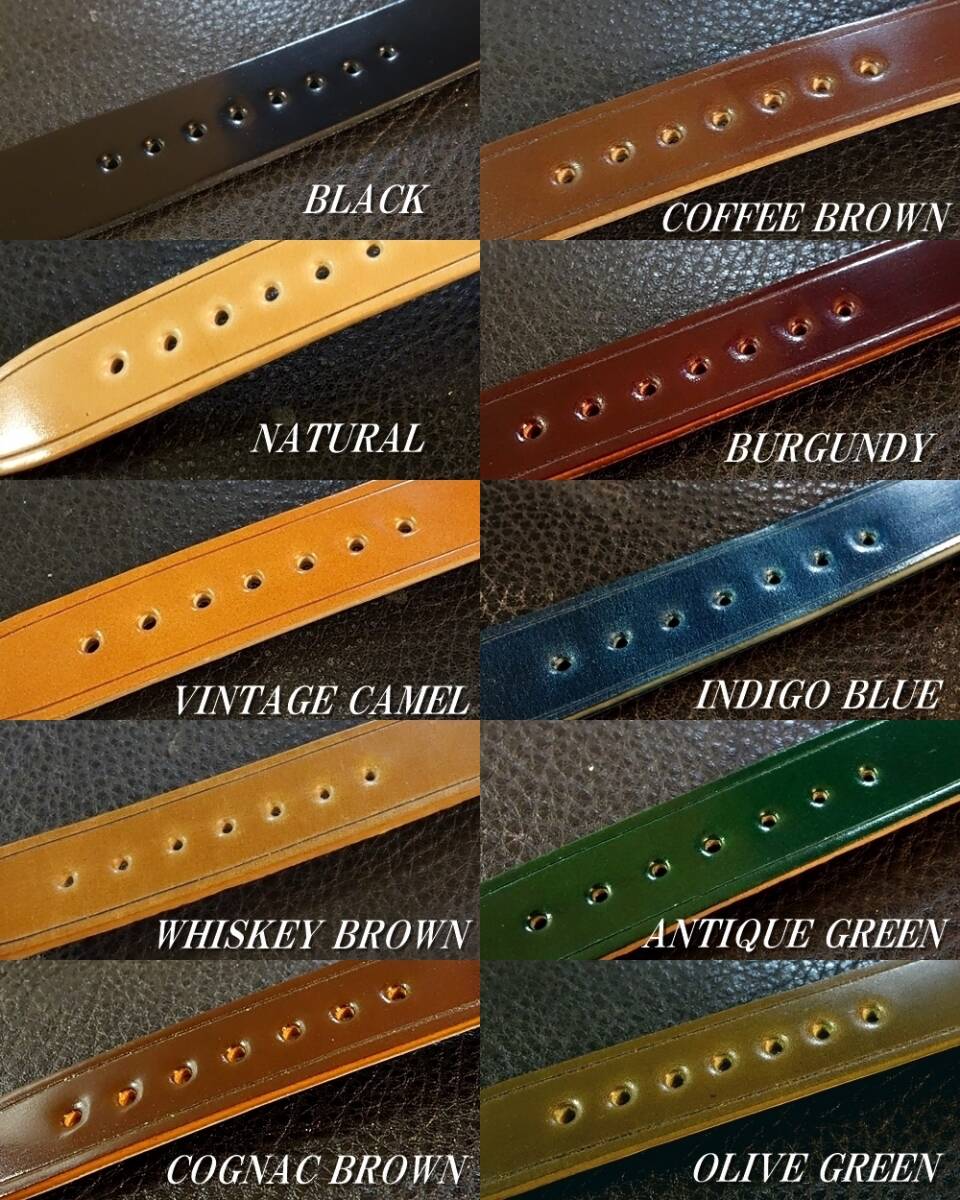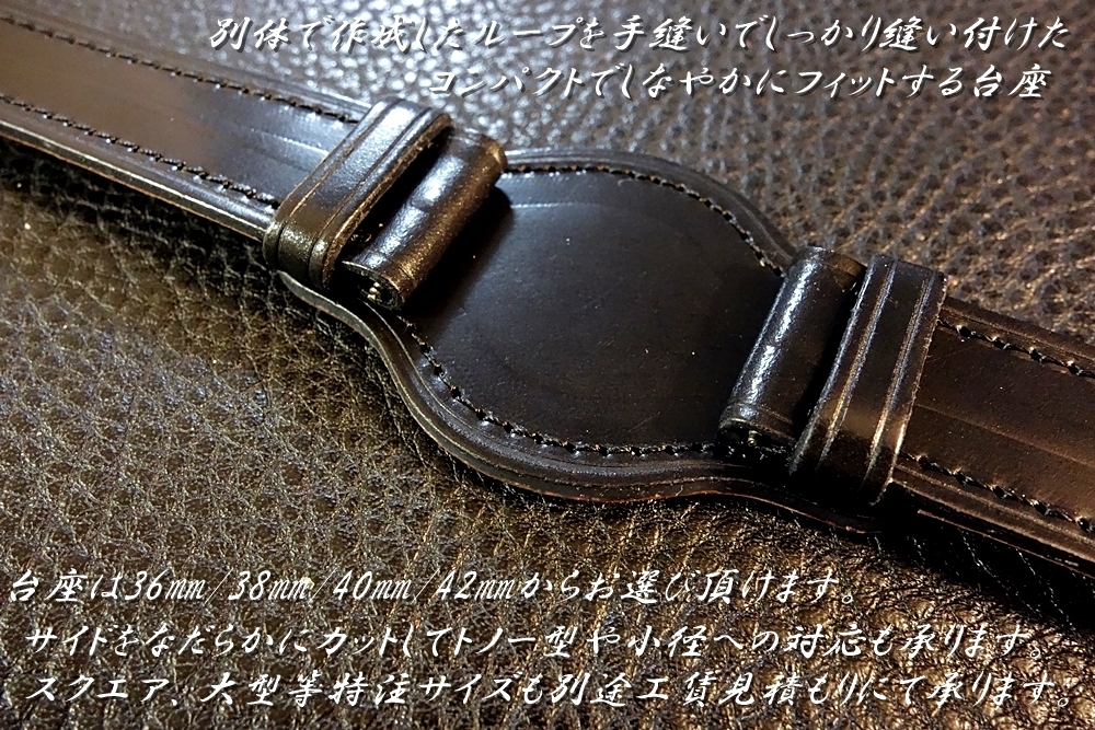 | ◆台座付VINTAGE BELT◆高品質国産アニリン染めコードバン カスタムオーダー(カラー/台座サイズ/バックルカラー) 日本製 受注生産(納期10日前後) 腕時計ベルト |