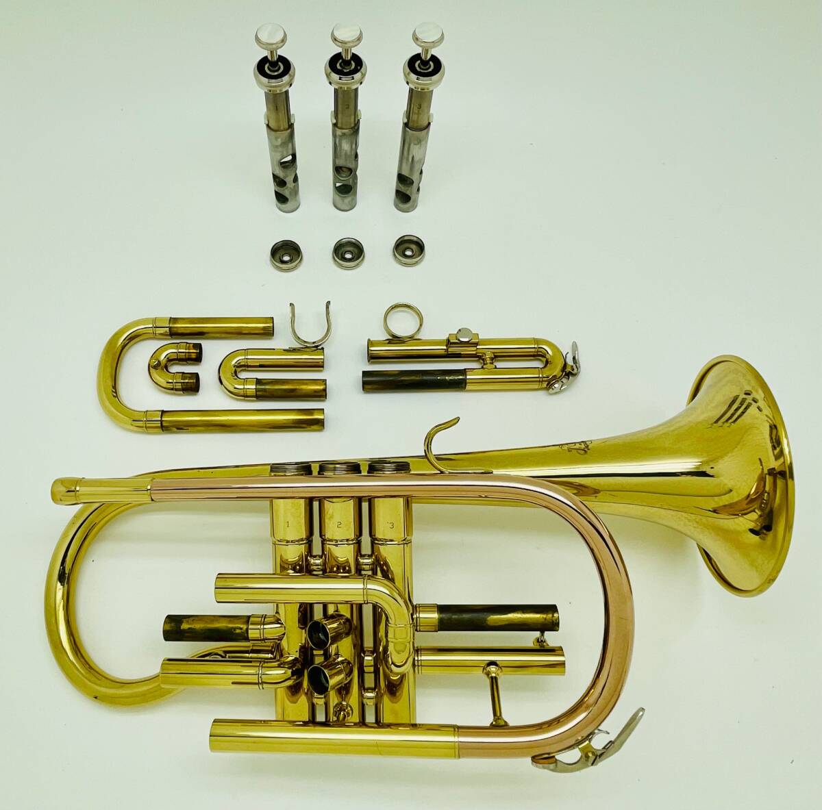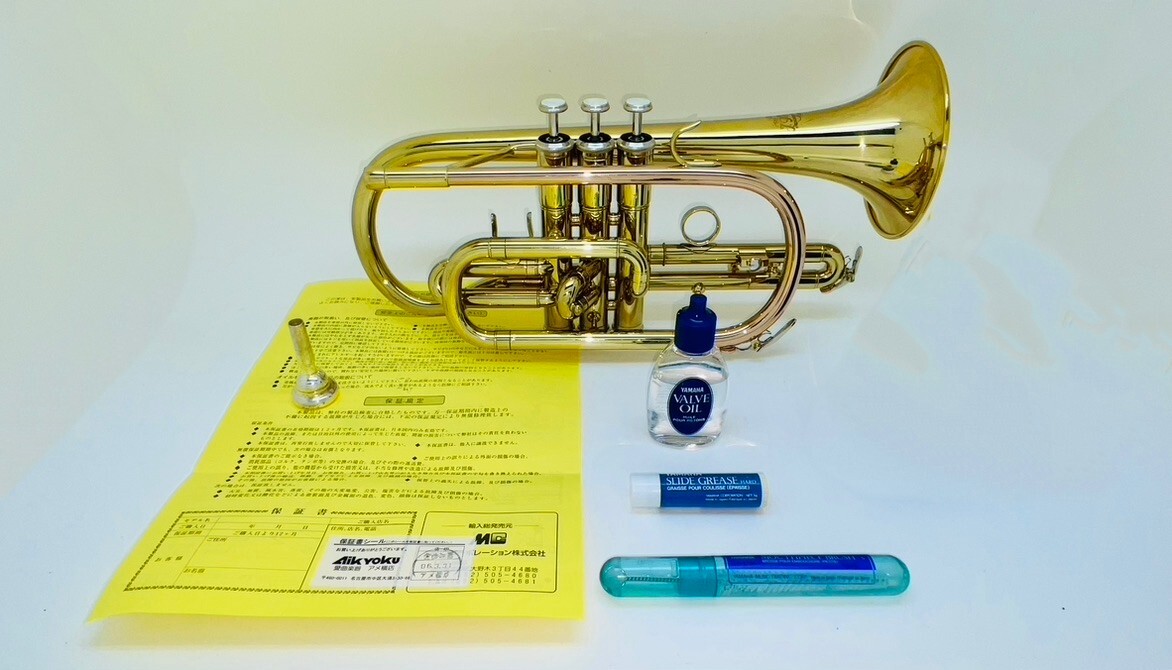 This high-quality CORNET comes in a beautiful clear brass lacquer finish and includes a durable backpackable case for easy transportation. The cornet is in excellent working condition and has been thoroughly cleaned, sanitized & tested to ensure top performance. An ideal choice for both beginner and intermediate players alike. This instrument is perfect for anyone looking for a reliable and high-quality cornet that delivers top-notch sound quality.Mouthpiece (unbranded) is in excellent condition with no damageWas completely disassembled, washed with sterisol wind instrument cleaner & deodorizer & then softly buffed & polishedShows general signs of careful use/marks/spotting etc. but no damage such as loose solder points, major gunk buildup, dings or stink (look at all the hi-res detailed pics to judge condition)Purchased new in 2019 for about ¥70,000 ($450 USD) played by one owner who took very good care of it and comes from a pet/smoke free home*Will also include (all used) a 1/2 bottle of Yamaha Valve oil, Yamaha Mouthpiece Brush, Yamaha Slide Grease and the original manufacturer instruction sheet/warranty pape