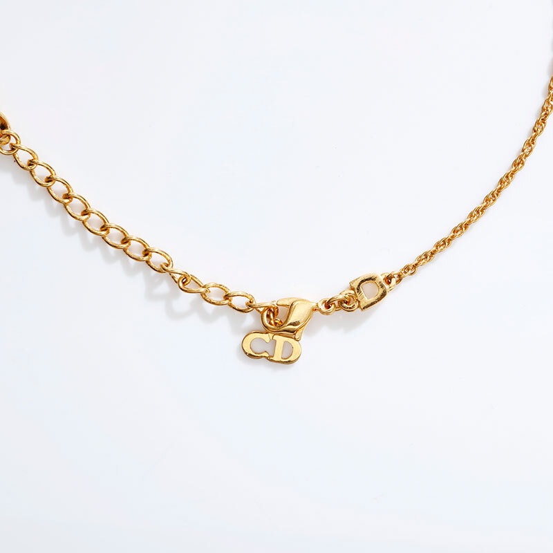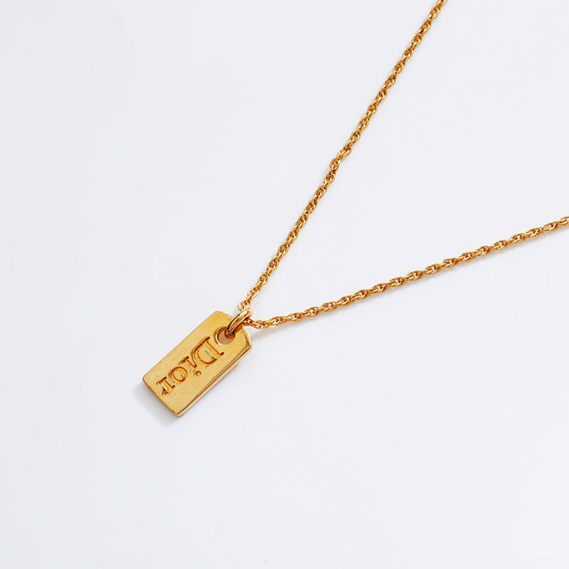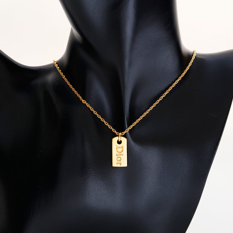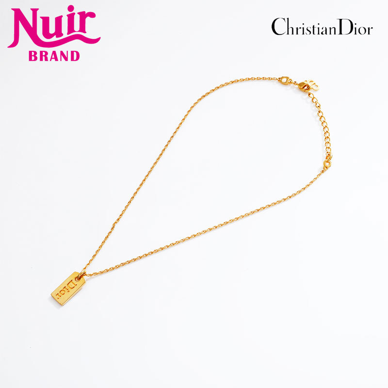 クリスチャンディオール Christian Dior ネックレス ロゴ プレート ゴールド