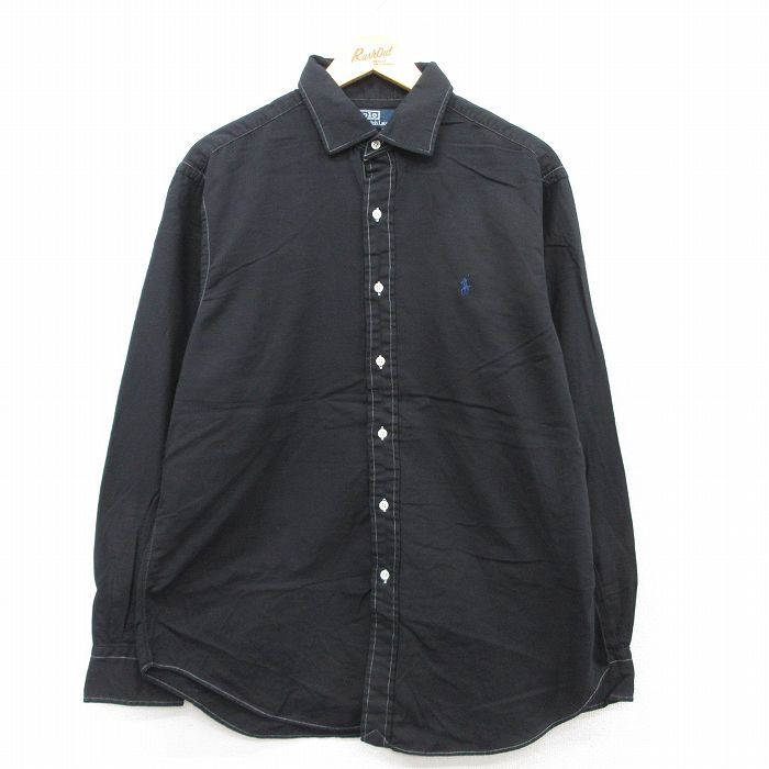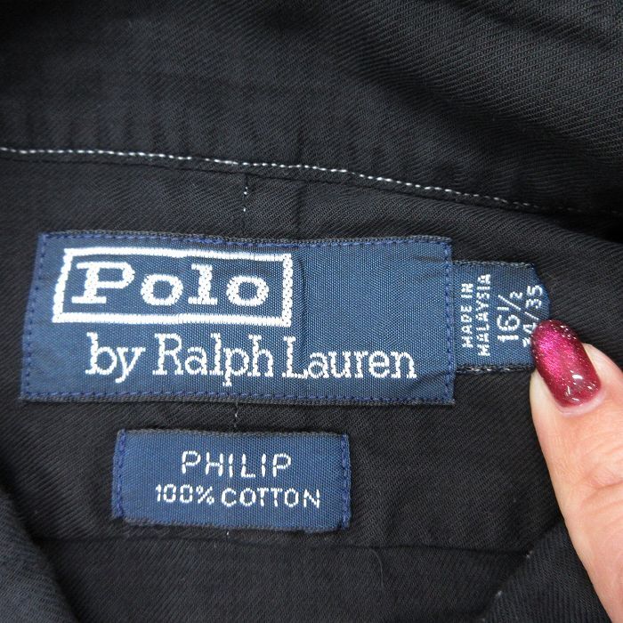 【商品名】 XL★古着 ラルフローレン 長袖 ブランド シャツ メンズ 90年代 90s ワンポイントロゴ PHILIP コットン ボタンダウン 黒