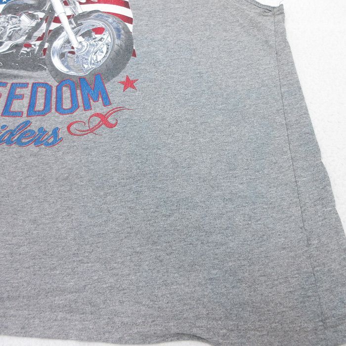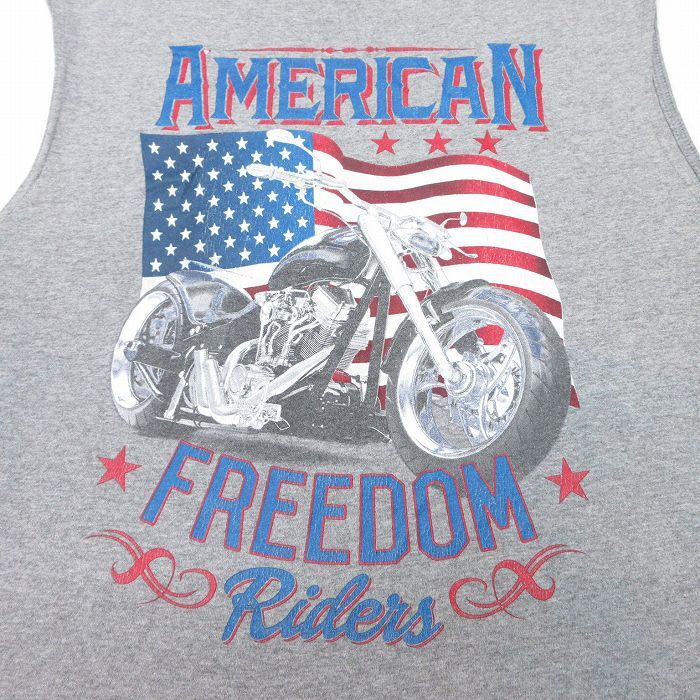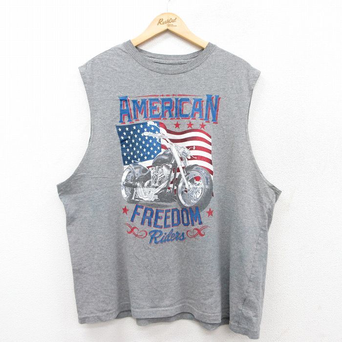 【商品名】 XL★古着 ノースリーブ Tシャツ メンズ バイク 星条旗 大きいサイズ クルーネック グレー 霜降り