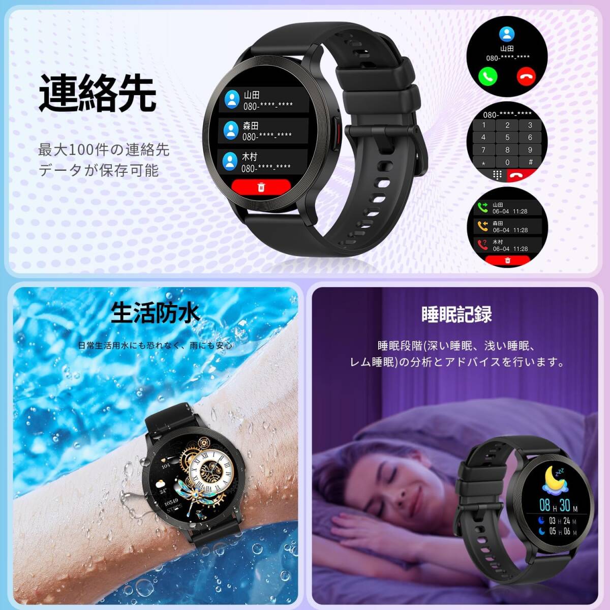 スマートウォッチ— 通話機能 活動量計 腕時計 運動モード 音楽再生 スポーツウォッチ IP67防水 SMS/Twitter/Line通知 機能 iPhone