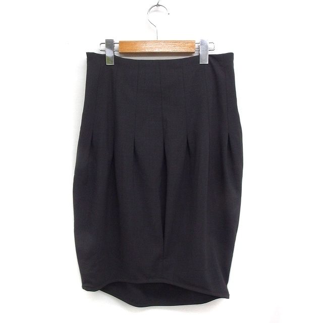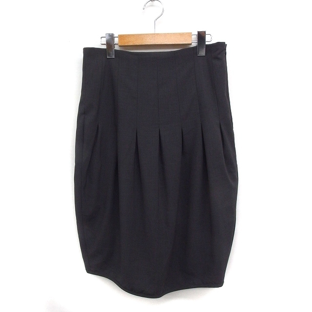 シーケーカルバンクライン ck Calvin Klein タック コクーンスカート ミディ丈 無地 コットン 綿 M チャコール /FT46 レディース