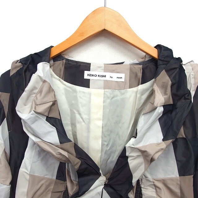 ケイコキシ KEIKO KISHI by nosh ショールカラー コート ミドル チェック ギャザー 2 ベージュ /NT22 レディース