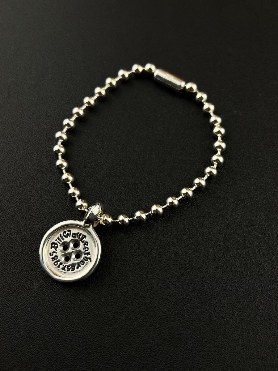 Bill Wall Leather ビルウォールレザー シルバーボタンペンダント ブレスレット シルバー925 ビーズチェーン