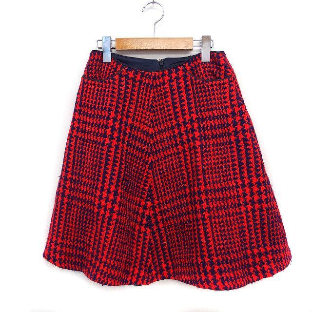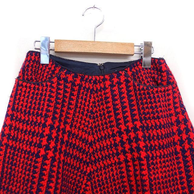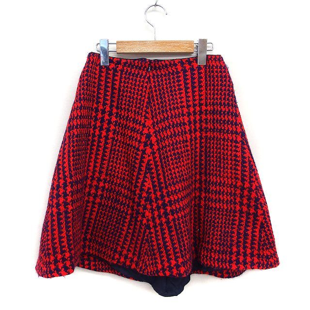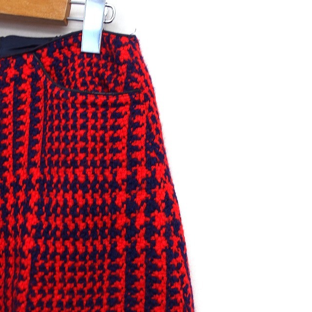 サリースコット Sally Scott 柄編み フレアスカート ミニ ウール 7 レッド 赤 ネイビー 紺 /FT7 レディース