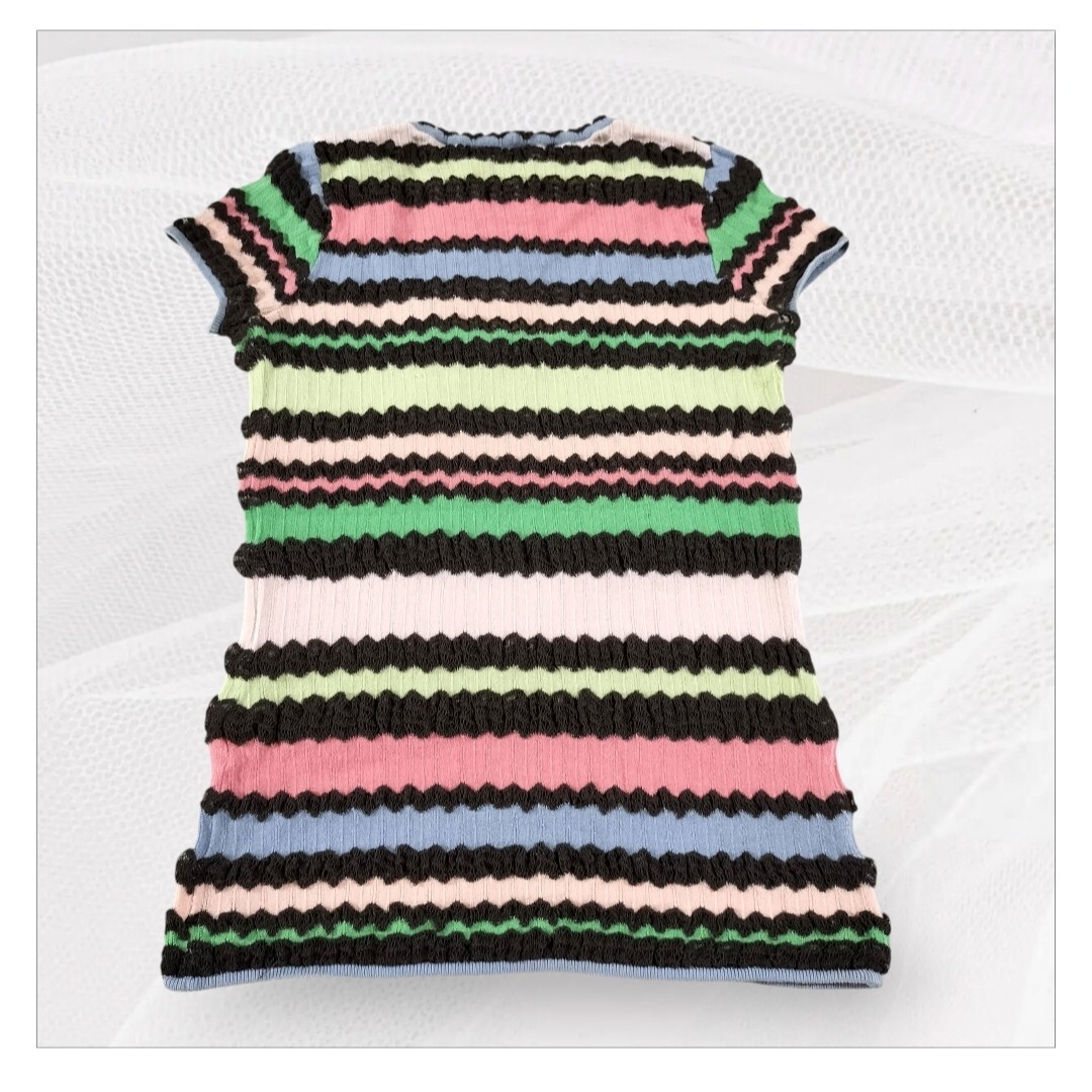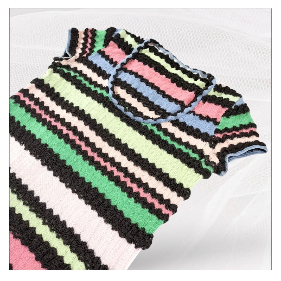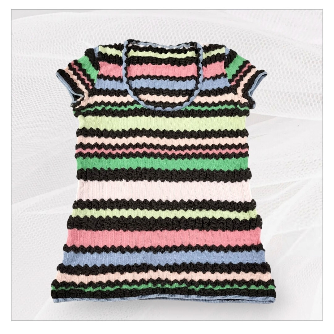 ミッソーニMISSONIのカラフルなボーダーデザインのリブ編みニット半袖トップス。