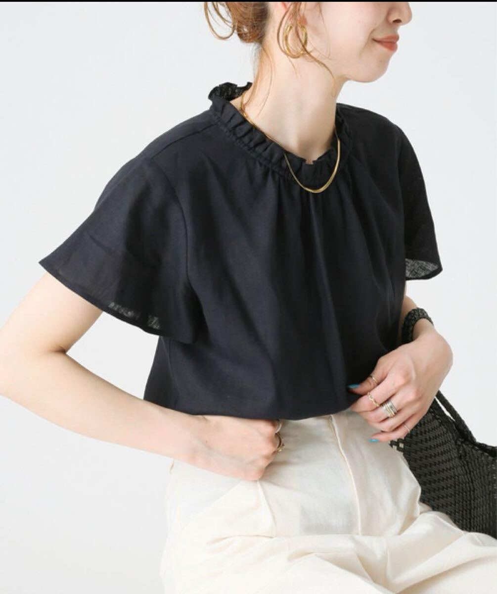 B.C STOCK毎年人気の麻レーヨンシリーズに、ネックフリルのブラウスが登場!ナチュラルながらカジュアルになりすぎない、大人に嬉しい素材が特徴の一着。長すぎない腰下丈はインでもアウトでも使いやすいジャストなバランス◎ご自宅で手洗い可能なイージーケアも嬉しいポイントです。