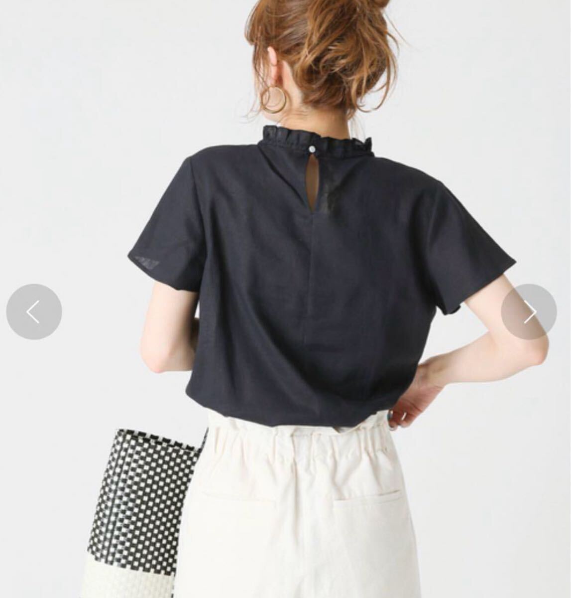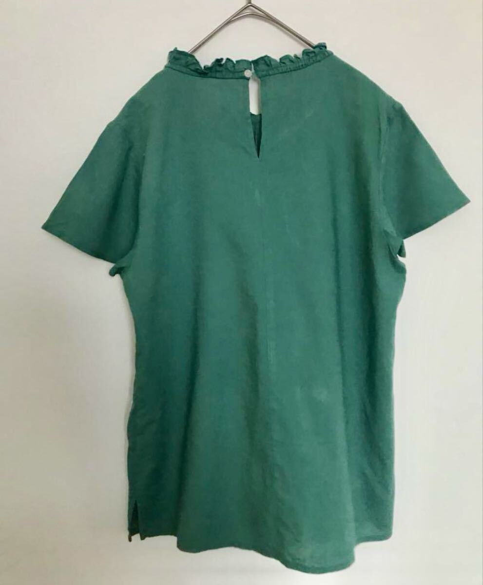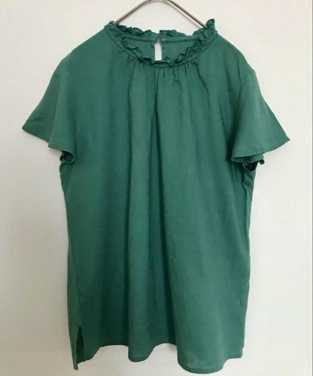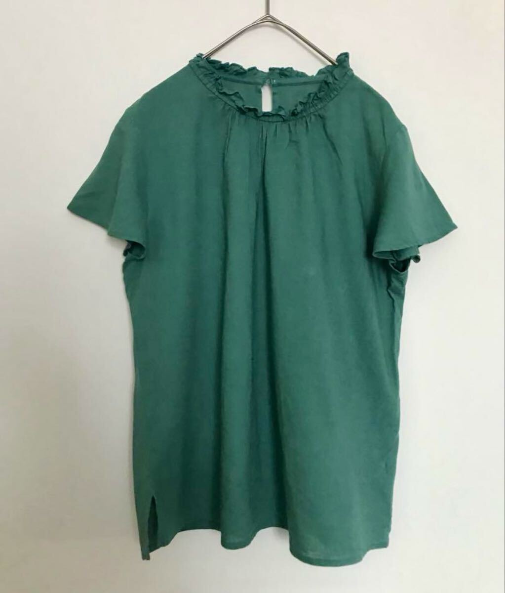 麻レーヨンネックフリルブラウス