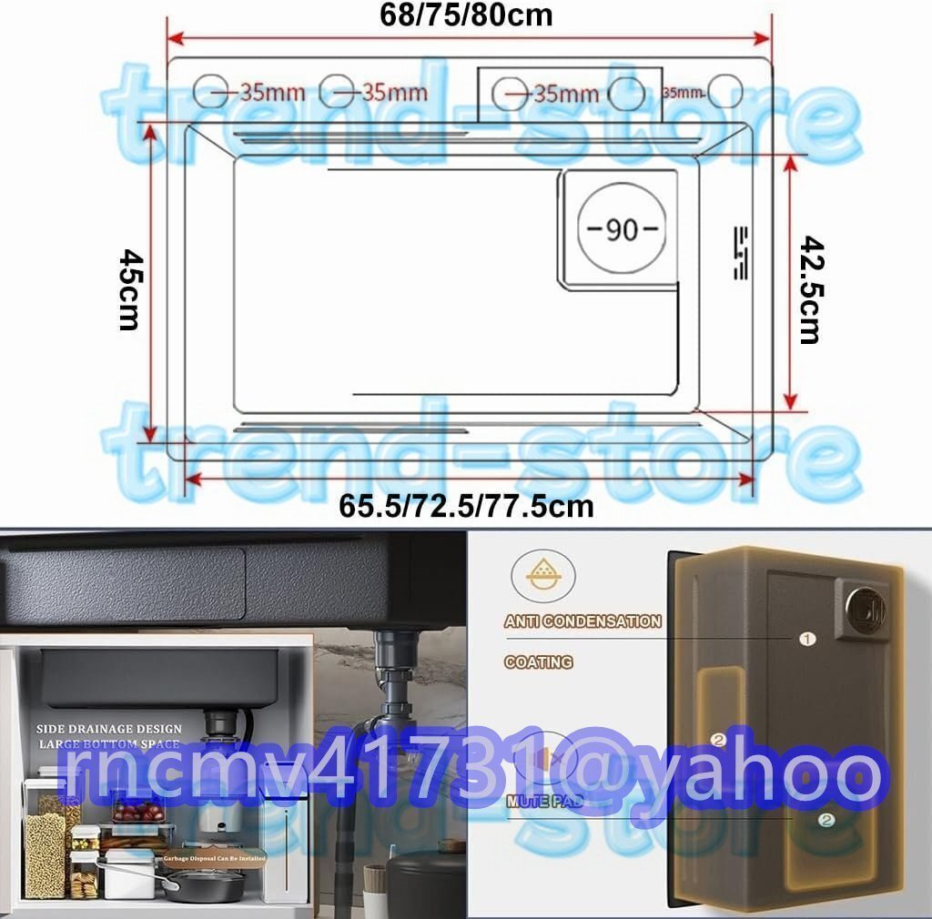 商品説明 商品説明状 態:新品未使用サイズ 68x45x22cm【水槽アタッチメントセット】水槽、コンソール排水装置、雨舞蛇口、排水鉢、まな板、排水かご、清水蛇口、加圧ガラス洗浄機、冷熱角弁、冷熱吸水管を含む。この水槽はいろいろなサイズがあり、100%衛生的で、食べ物にや