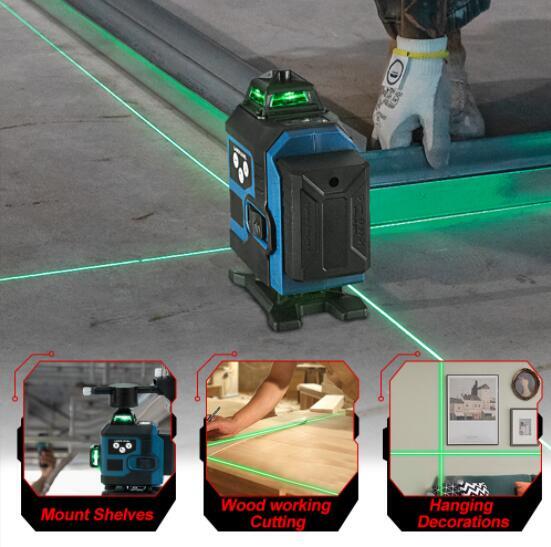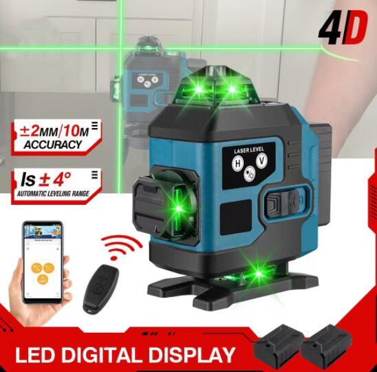 高品質レーザー墨出し器 APP制御 4x360°グリーンレーザー 水平器 16ライン IP65防塵防水 輝度調整 自動補正 リモコン操作バッテリー2個