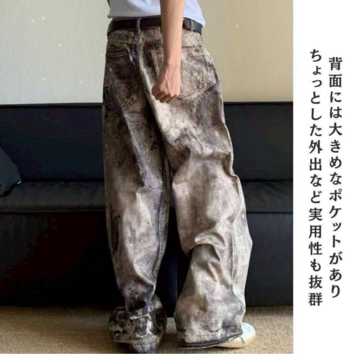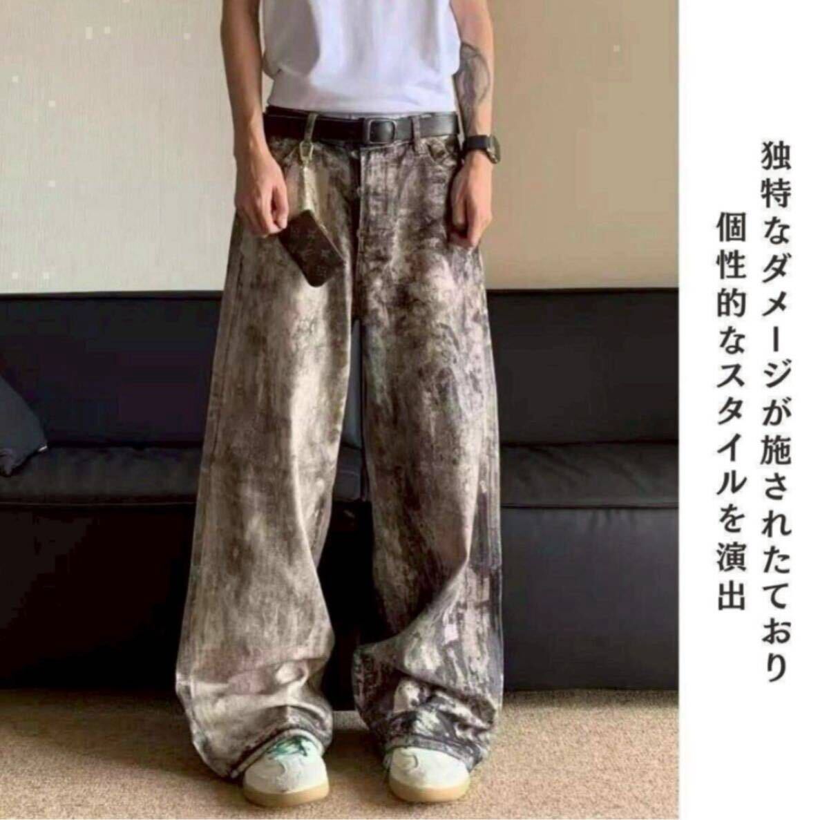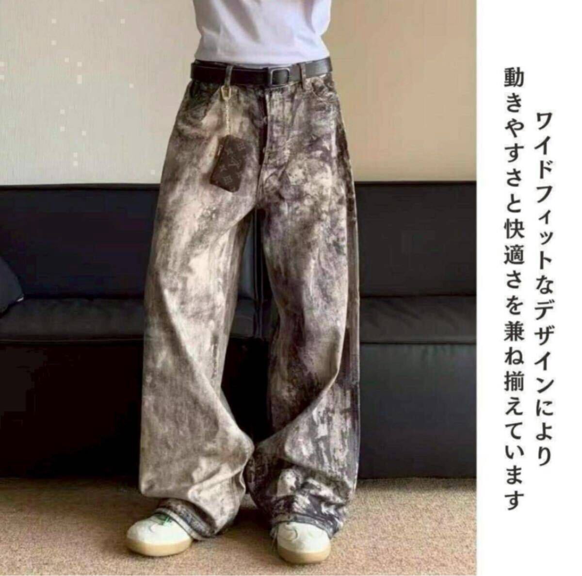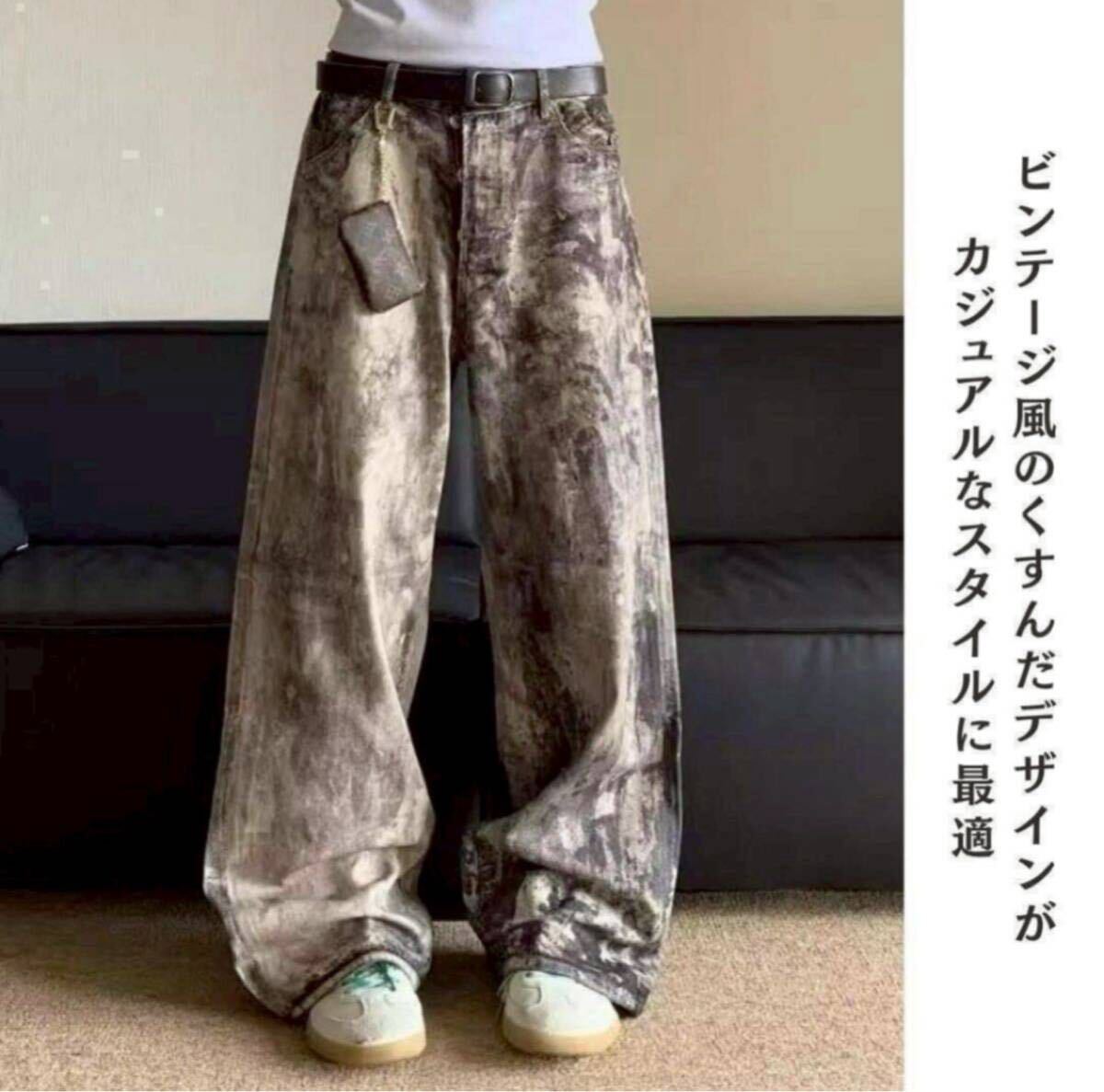 ウォッシュドデニムパンツ プリントデニム デジタルプリント ヴィンテージ ジーパン ワイドシルエット ワイドデニム バギーパンツ 迷彩 カモ柄デニム y2k 激太 アメカジ ハイウエスト 地底人 カーブデニムパンツ 体型カバー 韓国 中国 インポート