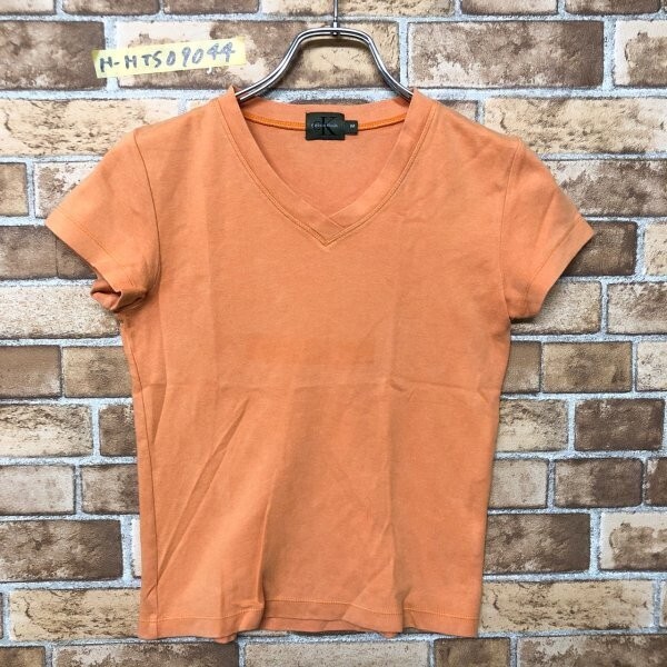Calvin Klein カルバンクライン レディース Vネック 半袖Tシャツ M オレンジ