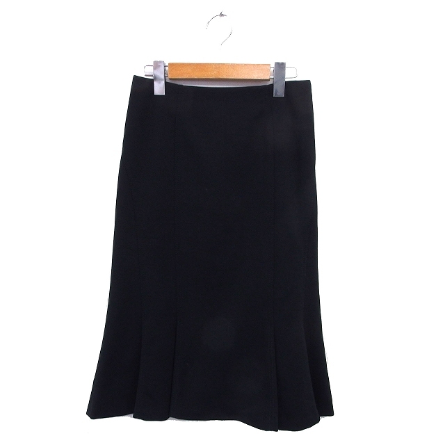 エポカ EPOCA タック マーメイド スカート フレア ロング ウール バックジップ 無地 38 黒 ブラック /NT10 レディース
