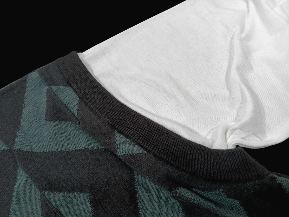 ★ブランド「BEAMS HEART ビームス ハート」 ●レトロな雰囲気の幾何学柄が目を惹く、ベストを重ね着しているようなスタイルの長袖フェイクレイヤードです。 ●リラックス感のあるBIGシルエットで、インナーにTシャツを重ね着したようなフェイクレイヤーの仕様です。 ●カラー/チャコール/グリーン ●サイズ/(Mサイズ) 着丈 70.5/肩幅 52.5/身幅 57.5/そで丈 59 ※単位はcmです。尚、多少の誤差はお許しください。 ●素材/本体:コットン100% 袖部分:ポリエステル65% コットン35% テープ部分:ポリエステル65% コットン35% ●状態/新品 株式会社ビームス製です。 当方で出品している商品は全て正規品ですのでご安心ください。 | |