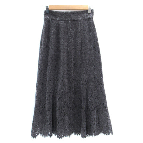 ナチュラルビューティーベーシック NATURAL BEAUTY BASIC フレアスカート マキシ丈 ロング丈 レース ベロア M グレー /SM28 レディース