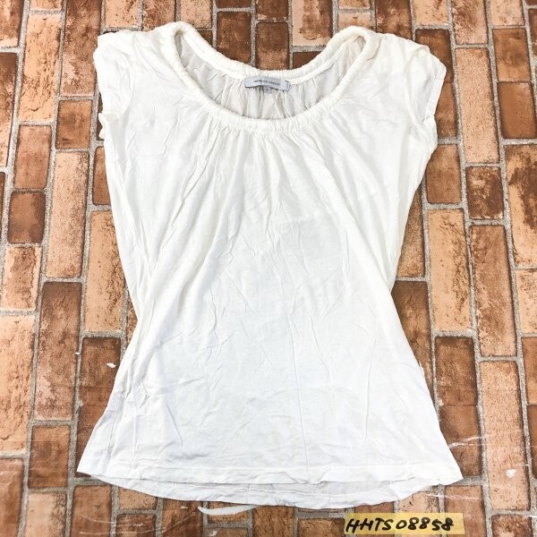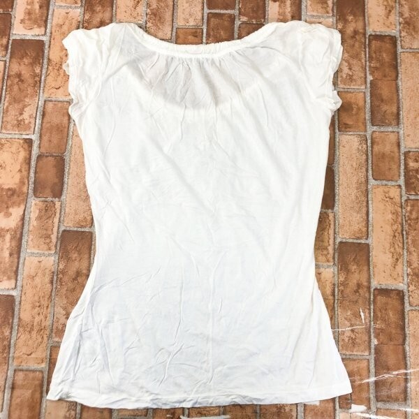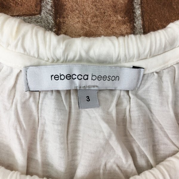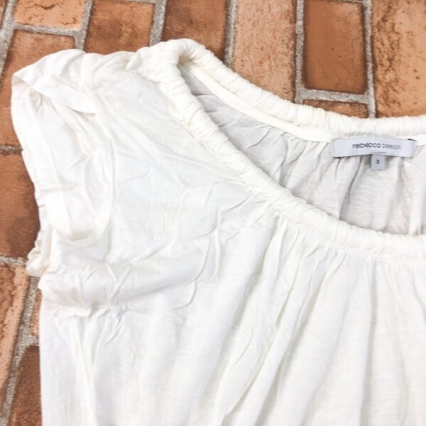 rebecca beeson レベッカビーソン USA製 襟 シャーリング ネックゴム使い フレンチスリーブ 半袖Tシャツ 3 白