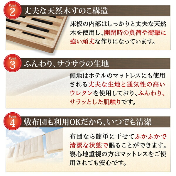 お客様組立 通気性抜群 すのこ構造 棚コンセント付 跳ね上げベッド スタンダードポケットコイルマットレス付き シングル 深さラージ