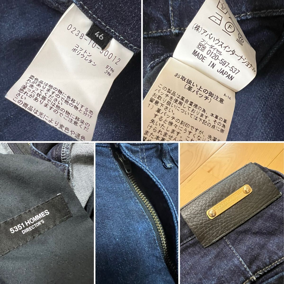 [5351 POUR LES HOMME DIRECTOR'S] 19SS 定価37,400 パラクール インディゴデニム スリムストレッチスラックスパンツ 46 402381050012 日本製 5351プールオム