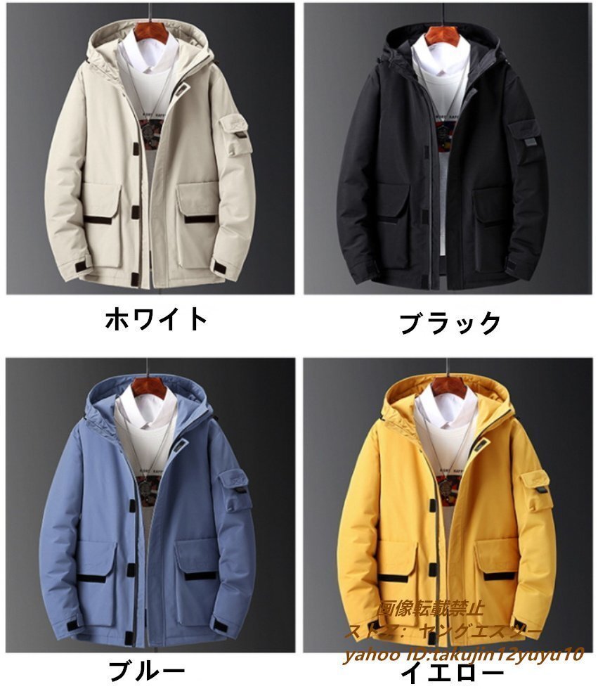 新品特売■ダウンジャケット メンズ 防寒服 ジャンパー ブルゾン ワークジャケット フード付き アウター バイクウェア 四色 ホワイト