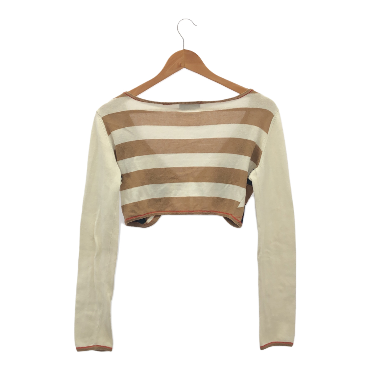 STAFF COMMENT | バーバリー LONDON BLUE LABELのボレロカーディガンです。素材はコットンで、カラーはブラウン。短めの丈が特徴で、羽織るだけでおしゃれな印象になります。普段使いから、ちょっとしたお出かけまで幅広く活躍してくれるでしょう。状態はCランクで、全体的に使用感と少し毛わだちがあるのと、金具に小傷がございますが、デザイン性の高いアイテムです。 |
