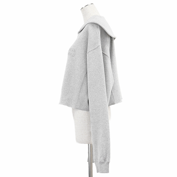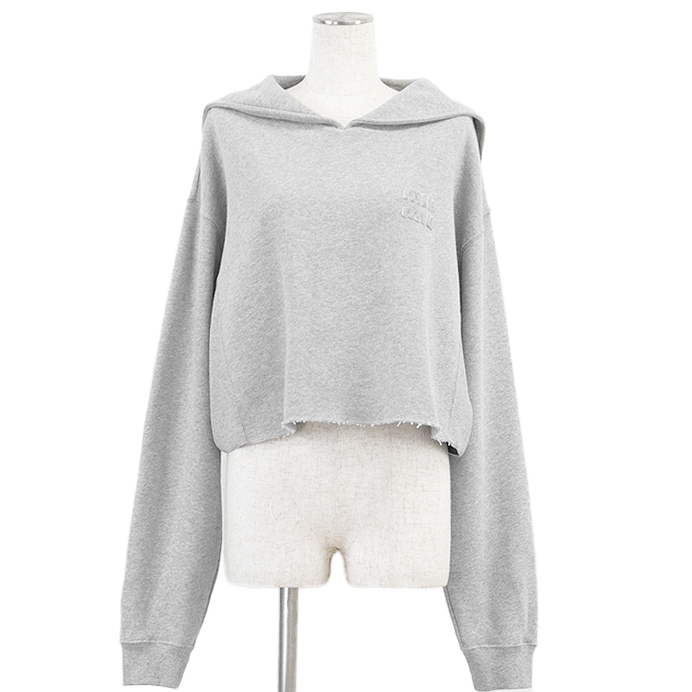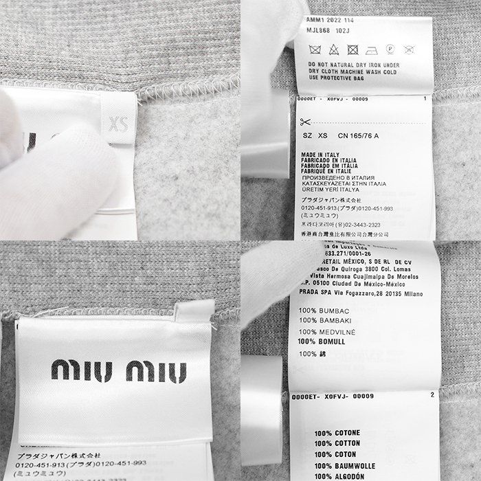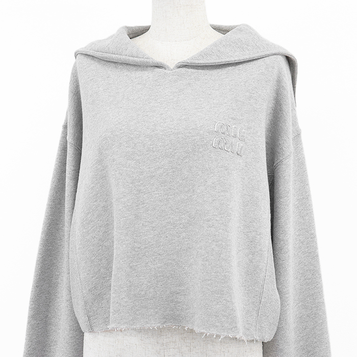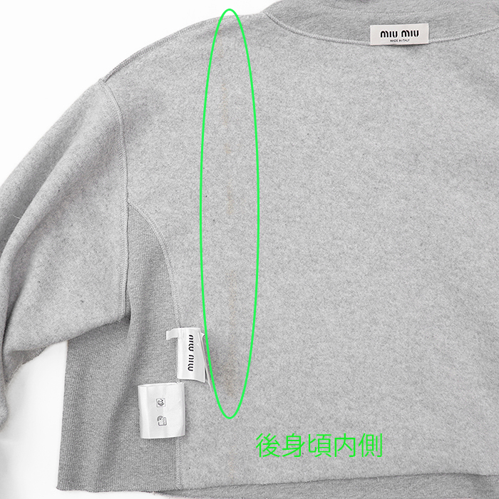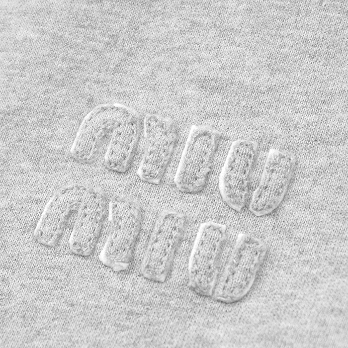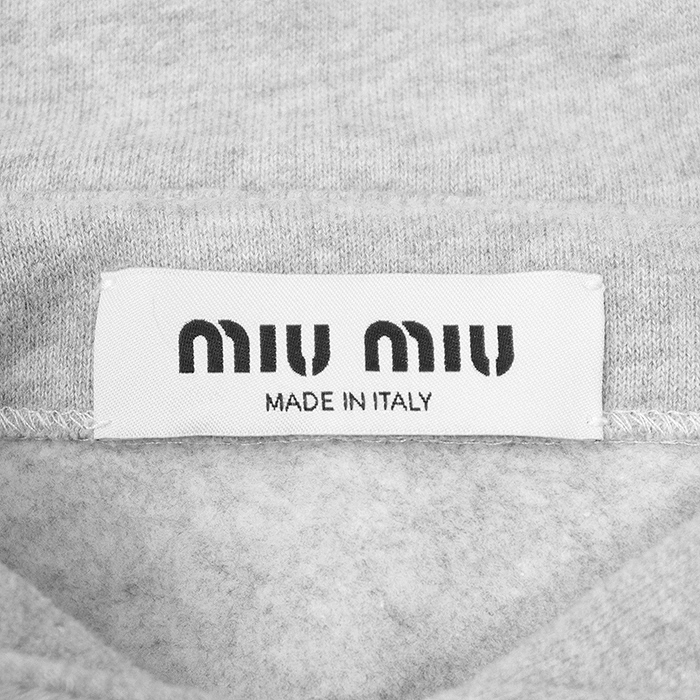 シリーズMiu Miu ミュウ ミュウ スウェット クロップド シグネチャー ロゴ エンブロイダリー 長袖 裏起毛 レディース サイズ XS 灰色 伊製