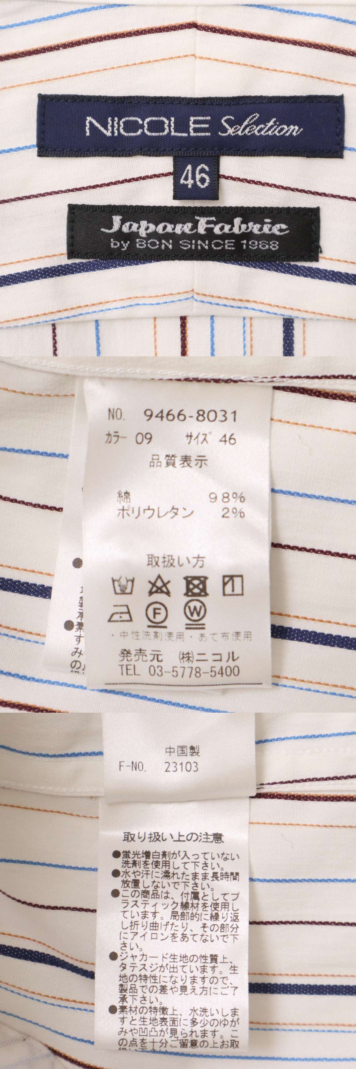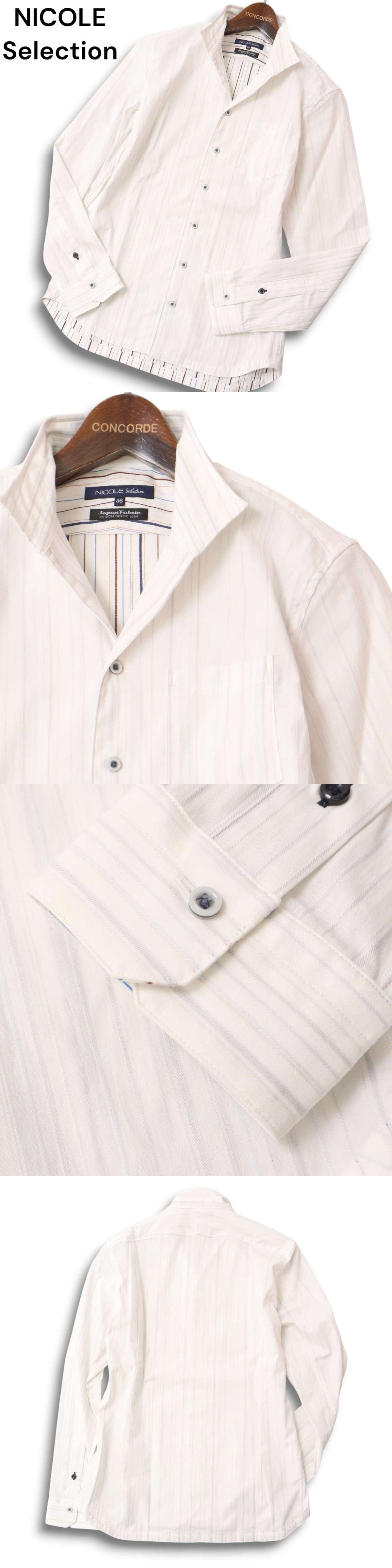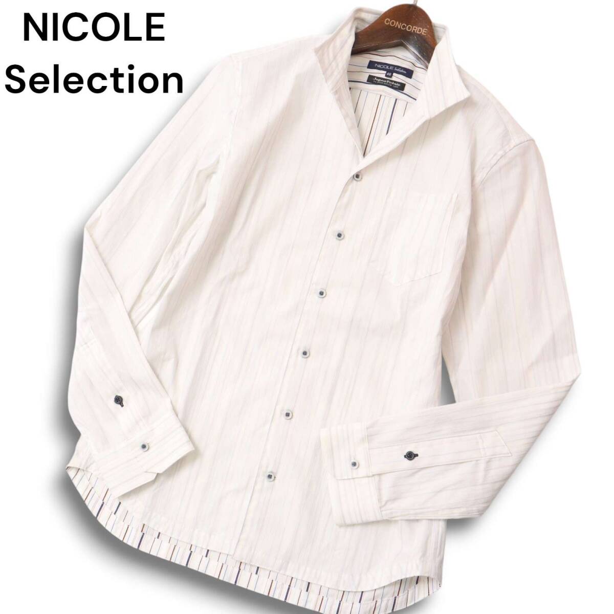NICOLE Selection ニコル セレクション 通年 襟ワイヤー★ イタリアンカラー ストライプ 長袖 シャツ Sz.46 メンズ 白