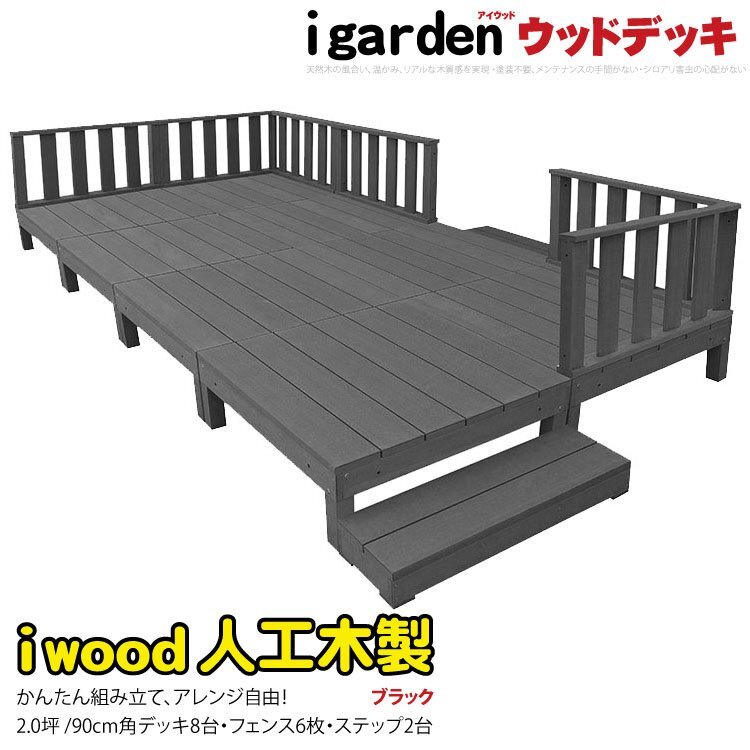 igarden アイウッドデッキ 16点セット(デッキ8・ローフェンス6・90ステップ2)2.0坪 ブラック 樹脂製 テラス バルコニー -8d6f2sbk
