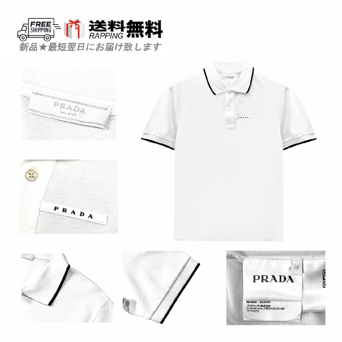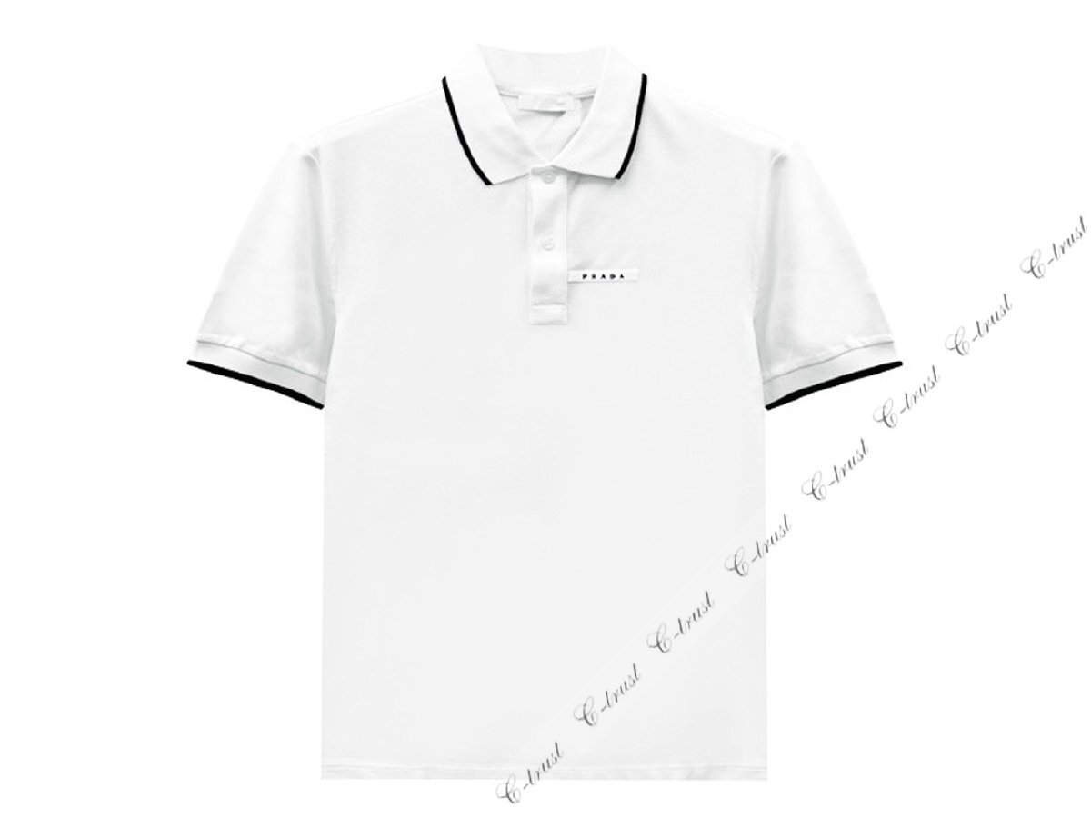 L711-WH-M.. PRADA プラダ ポロシャツ POLO ピケ コントラストカラー 半袖 コットン ロゴ ★ F0BA1 ホワイト