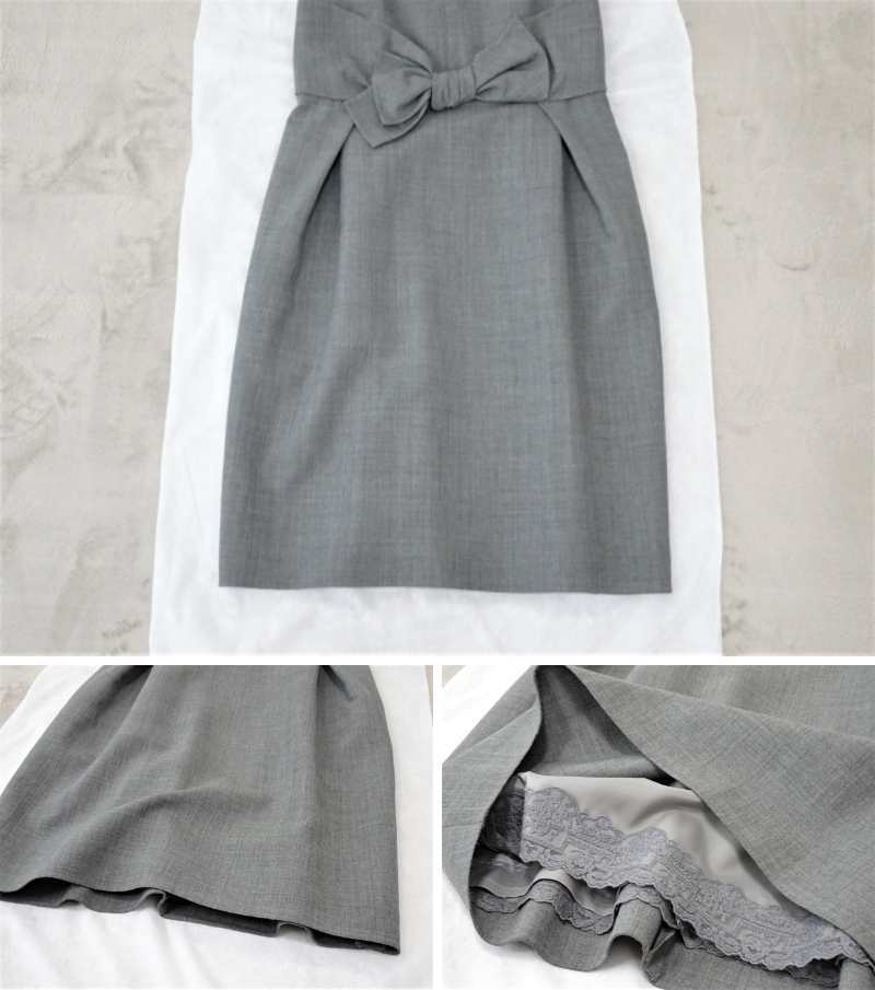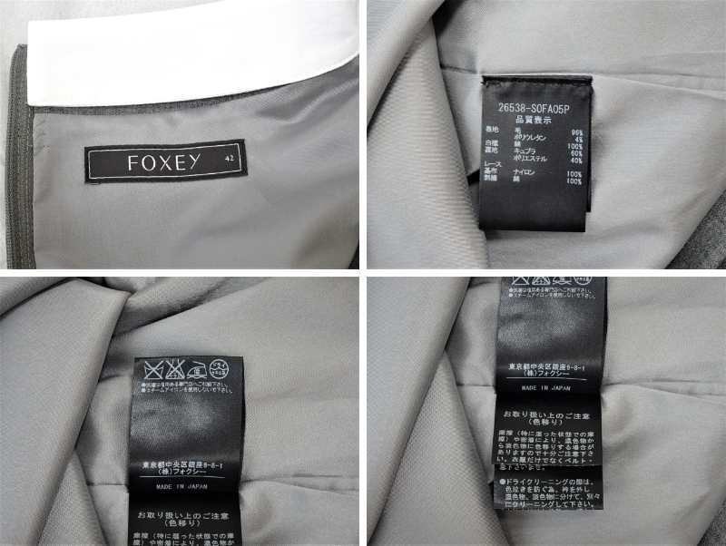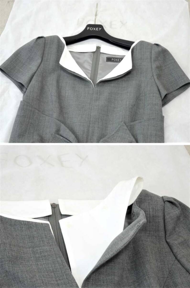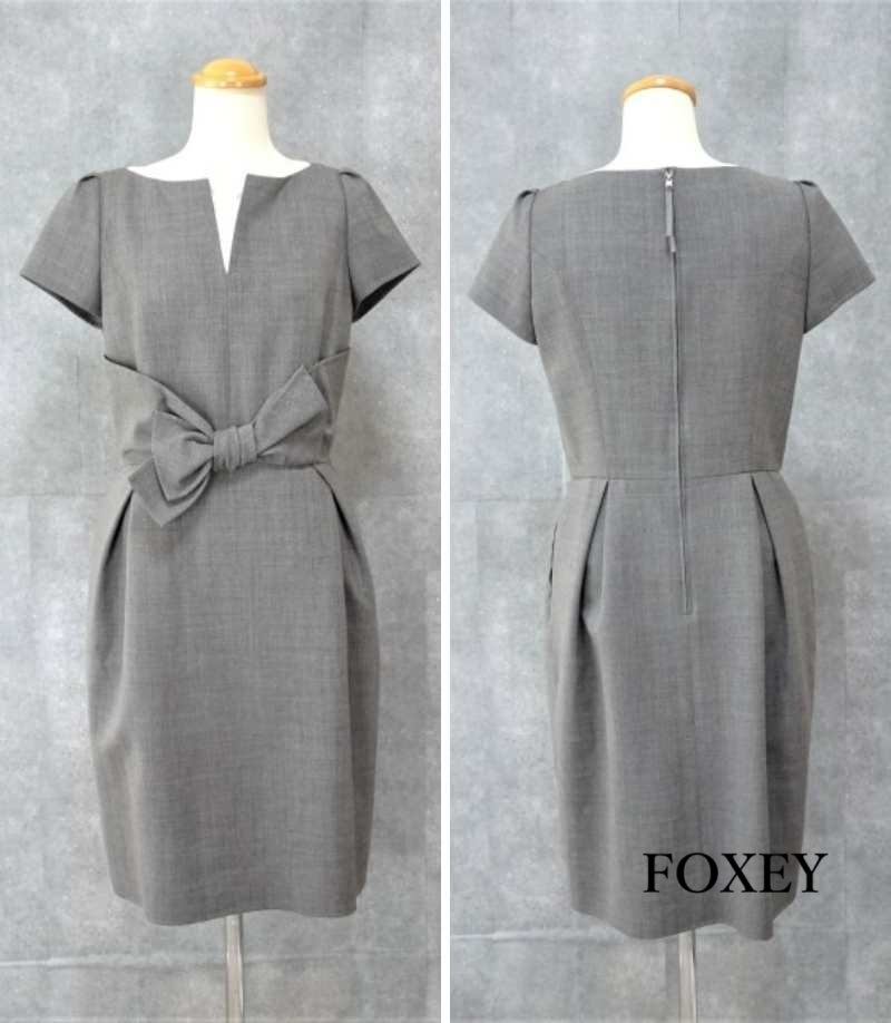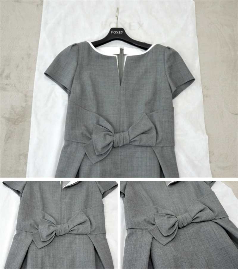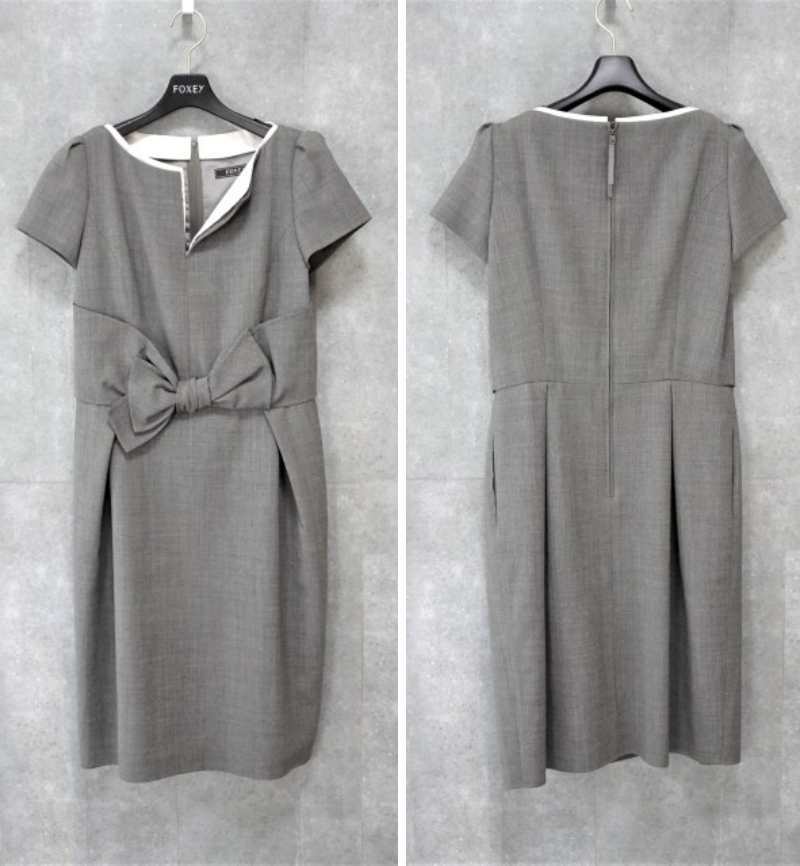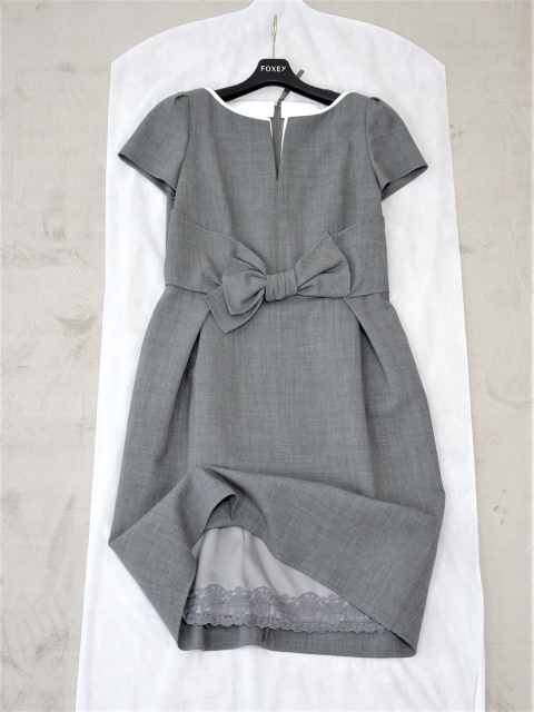 【FOXEY|フォクシー】リボンモチーフ 半袖 ワンピース ウエストマークワンピース 2WAY グレー 42 卒業式 入学式 式典