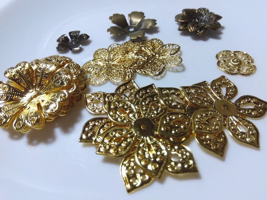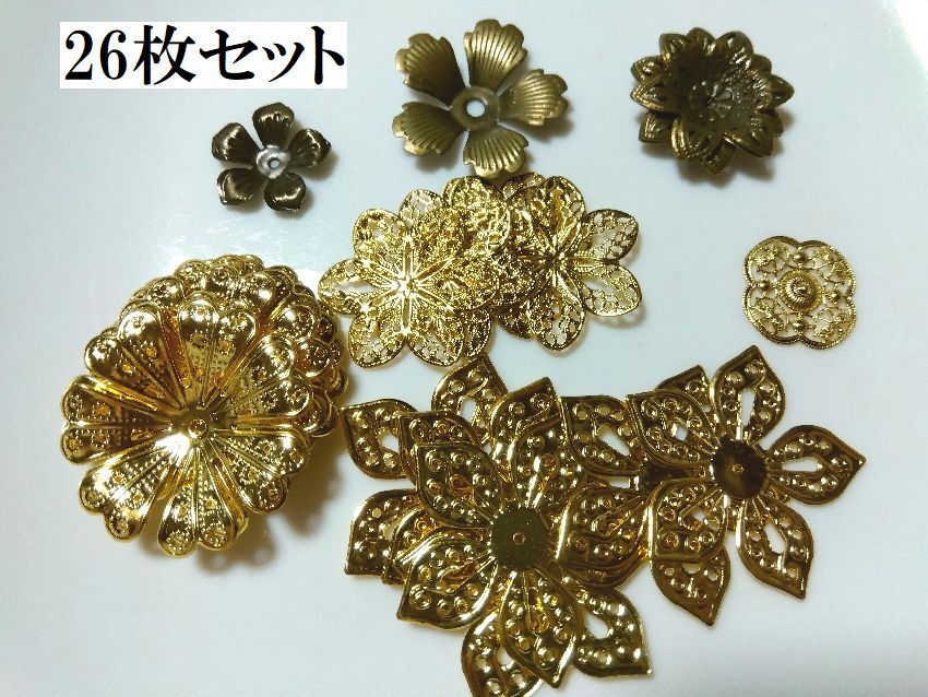 手芸用品け74■透かしパーツ大花座26枚セット■ゴールド金古美*ピアスアクセサリーパーツハンドメイド