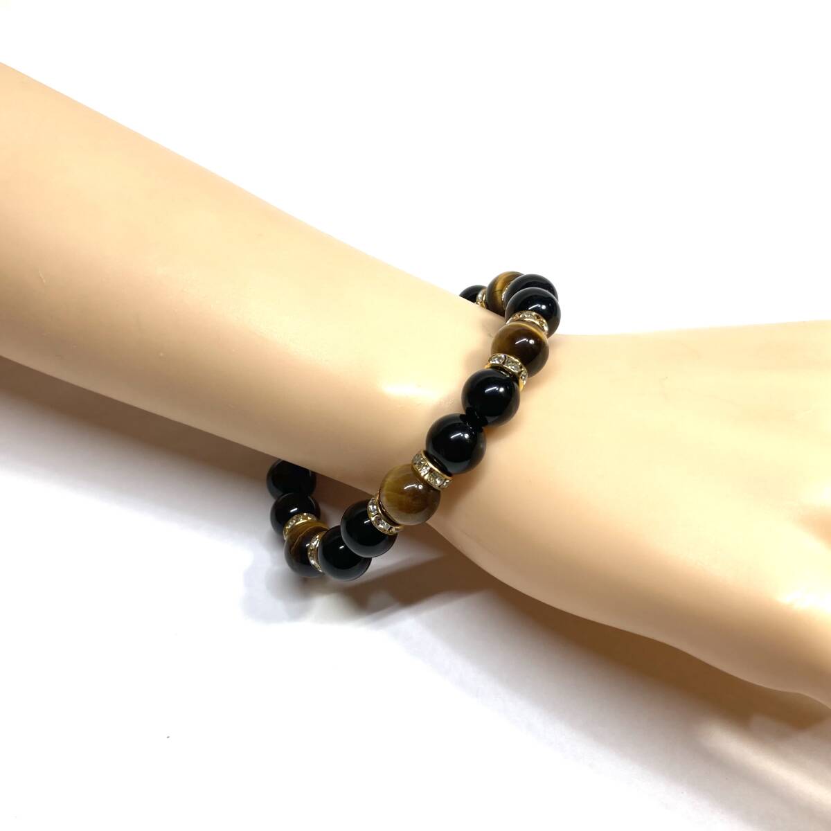 モリオン&タイガーアイ パワーストーン ブレスレット 天然石ブレス (ゴールド) 10mm メンズ・レディース 厄除け 金運 ☆